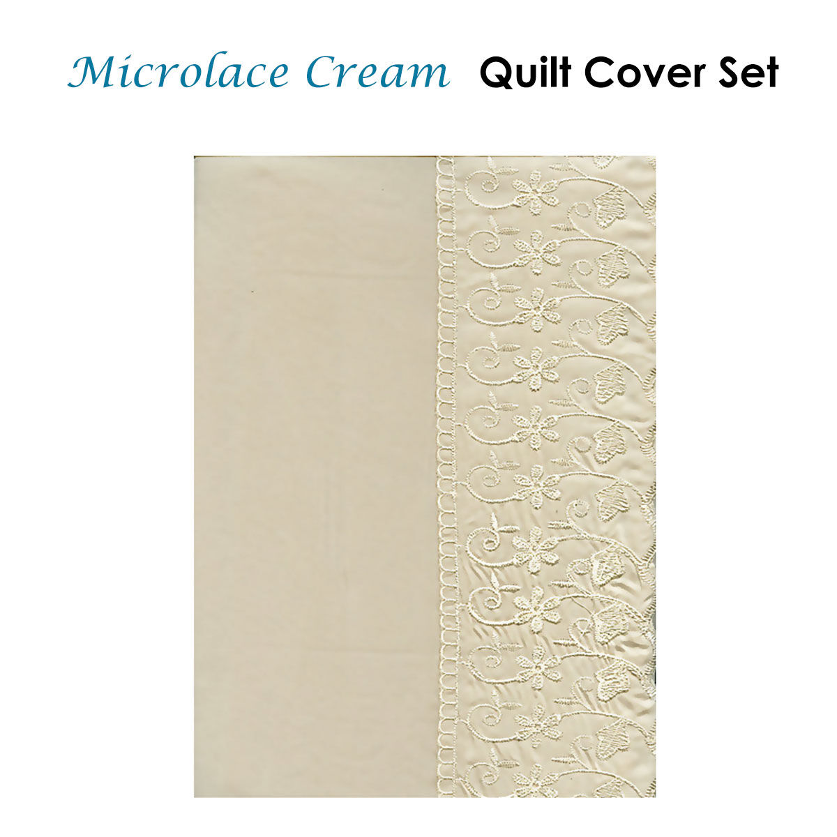 $45.89The Microlace Cream Quilt Cover Set by Essentially Home Living is a perfect design to create a minimalist yet elegant bedroom style. It features a classic floral lace design in soft colour tone that will add a touch of timeless bedroom design. It is made from quality and soft to touch Microfiber fabric softness you can enjoy all night long.