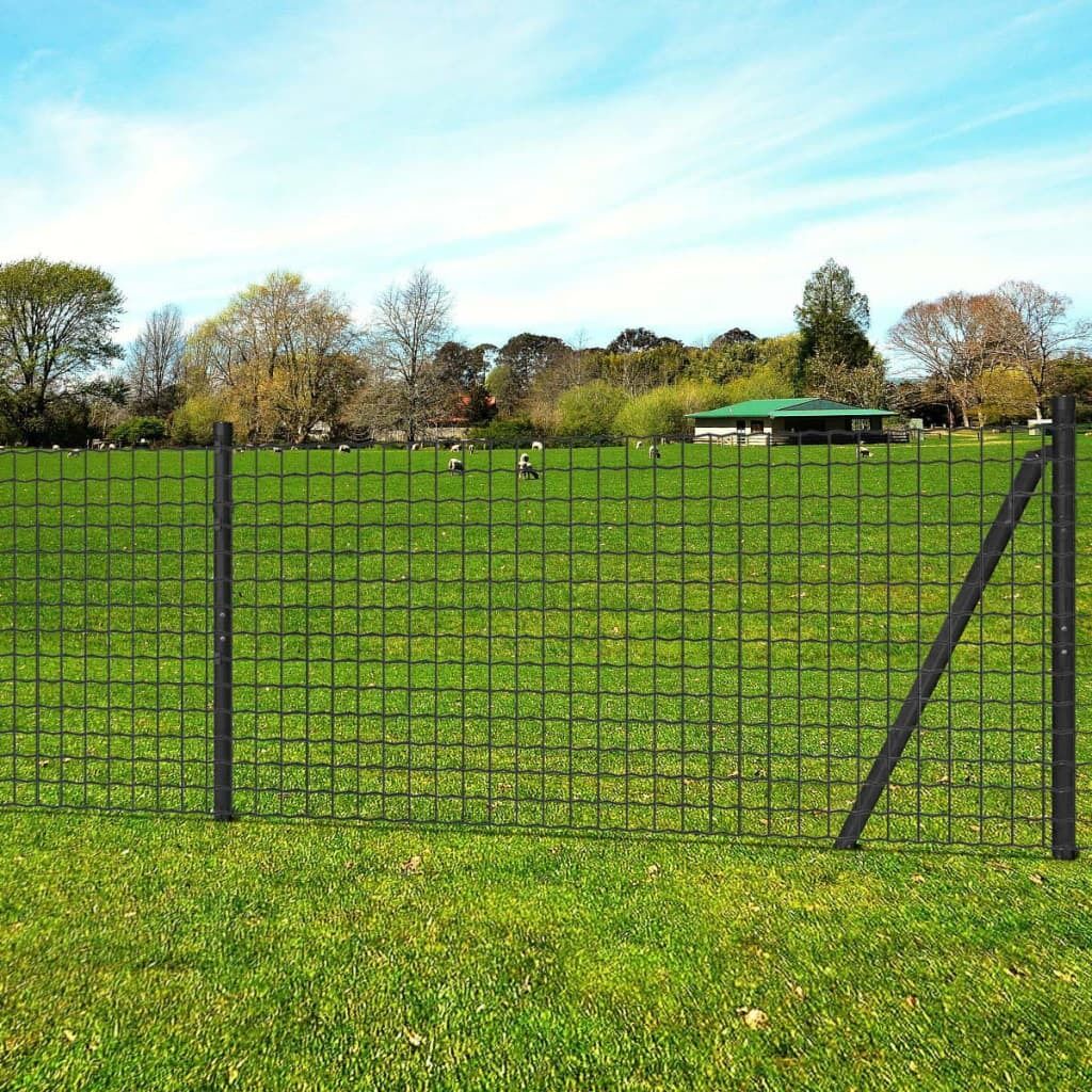 NOW $289.22This euro fence set with ground spikes contains everything you need to erect a sturdy and easy-to-install fence. It can be used as an ordinary perimeter fence or a barrier for animal enclosures or facilities. The set is delivered with posts, and installation accessories including post caps, wire holders and screws. The included spike anchors enable you to easily anchor the posts, without needing to dig holes for them. The fence set has a strong construction. The PVC-coated wire mesh is resistant to weathering, corrosion and UV radiation. This garden fence set can be installed quickly and easily.