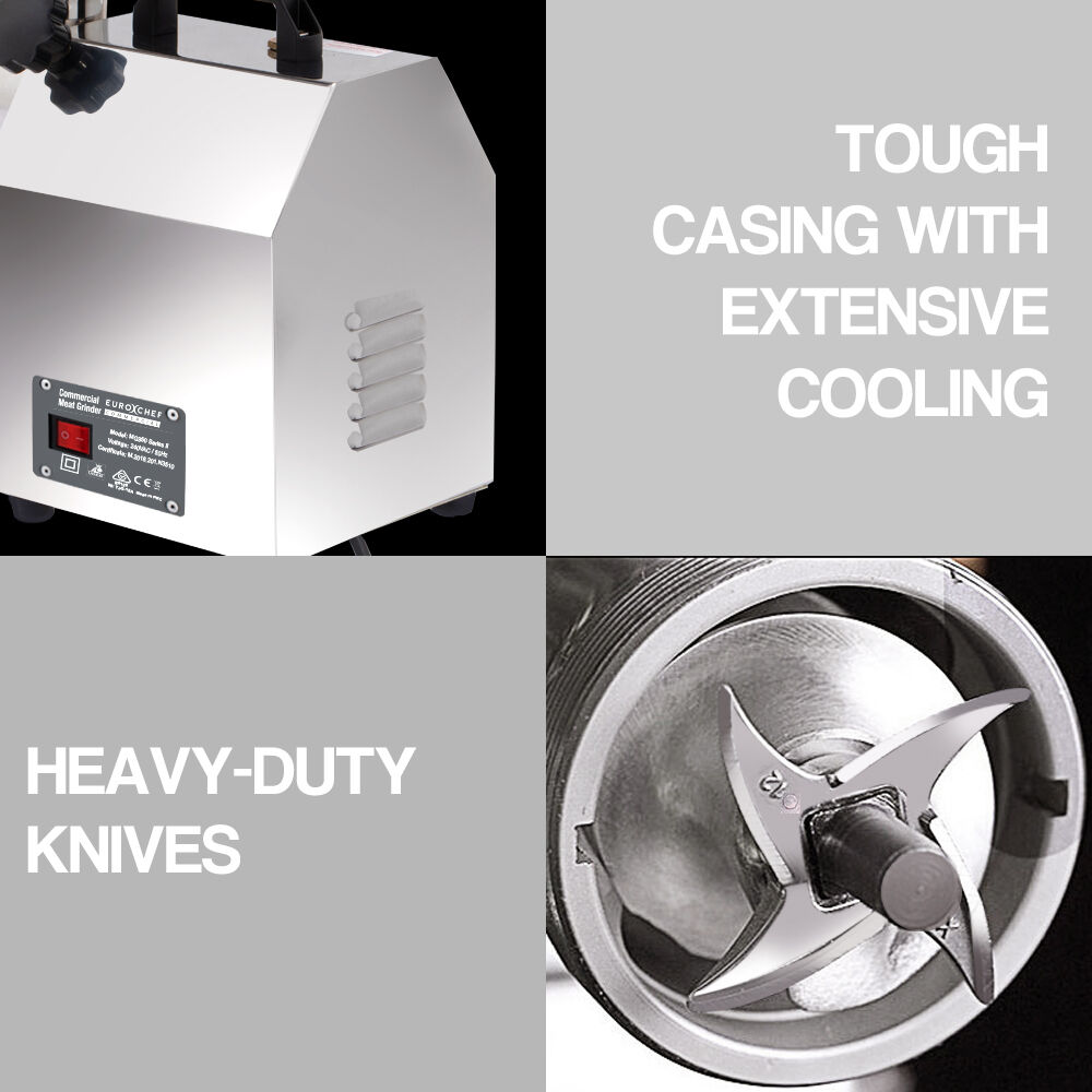 With 6mm and 8mm hole grinding plates and two blades you can quickly, efficiently and precisely grind to your requirements. Simply plug in and let the grinder show your business the way to financial success.