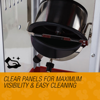 With 310W of heating power, this appliance features an illuminating light that gives a real cinema feel. It has a transparent casing and access hatch so you can see all the popping action as it's happening. Simply place the raw popcorn into the stainless steel kettle and watch fresh, hot popcorn burst out of the flip lids just like at the theatre! Then use the crank handle to load up your bowl - ready for an authentic cinematic experience in your lounge room.