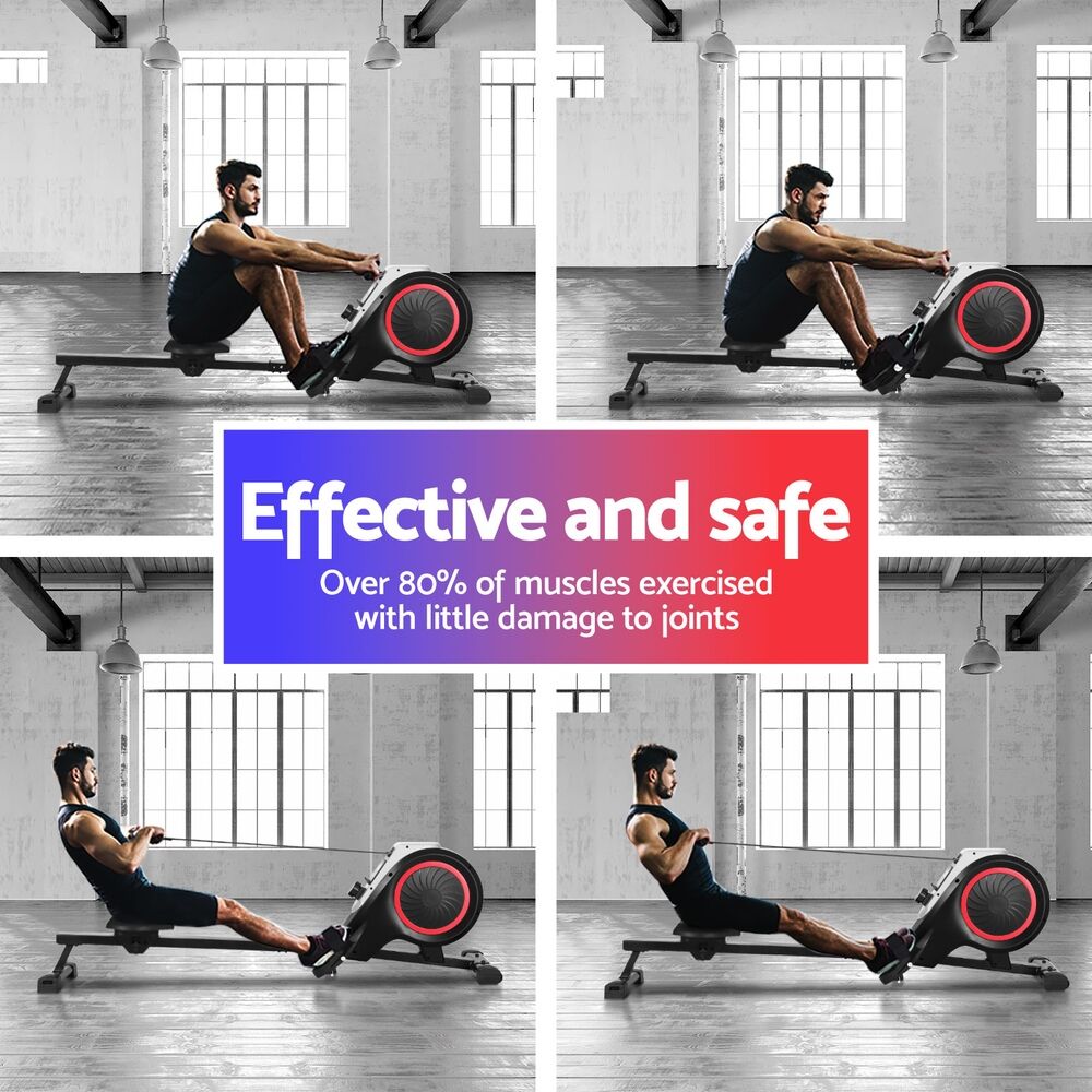 $290.69Want all the gym gains without gym prices? Get yourself a state-of-the-art Rowing Machine from Everfit. Made from a sturdy steel glide rail, durable elastic rope and a wide rowing beam, the machine targets all the major muscle groups for well-toned abs, back and legs. Simply select the workouts you desire with up to 16 resistance levels and monitor the progress on the large LCD console. A convenient tablet holder can keep you entertained and motivated throughout your exercise. The adjustable footrest and a comfortable moulded seat ensure smooth, secure glides. With a weight capacity of up to 120kg, the Rowing Machine is no pushover in terms of strength and durability. With its quiet operation, sturdy frame and anti-slip footrests, the machine is the perfect addition to your home fitness routine. When the huffing and puffing is done, simply fold it and store it until the next session. Go for it with the Everfit Rowing Machine today!