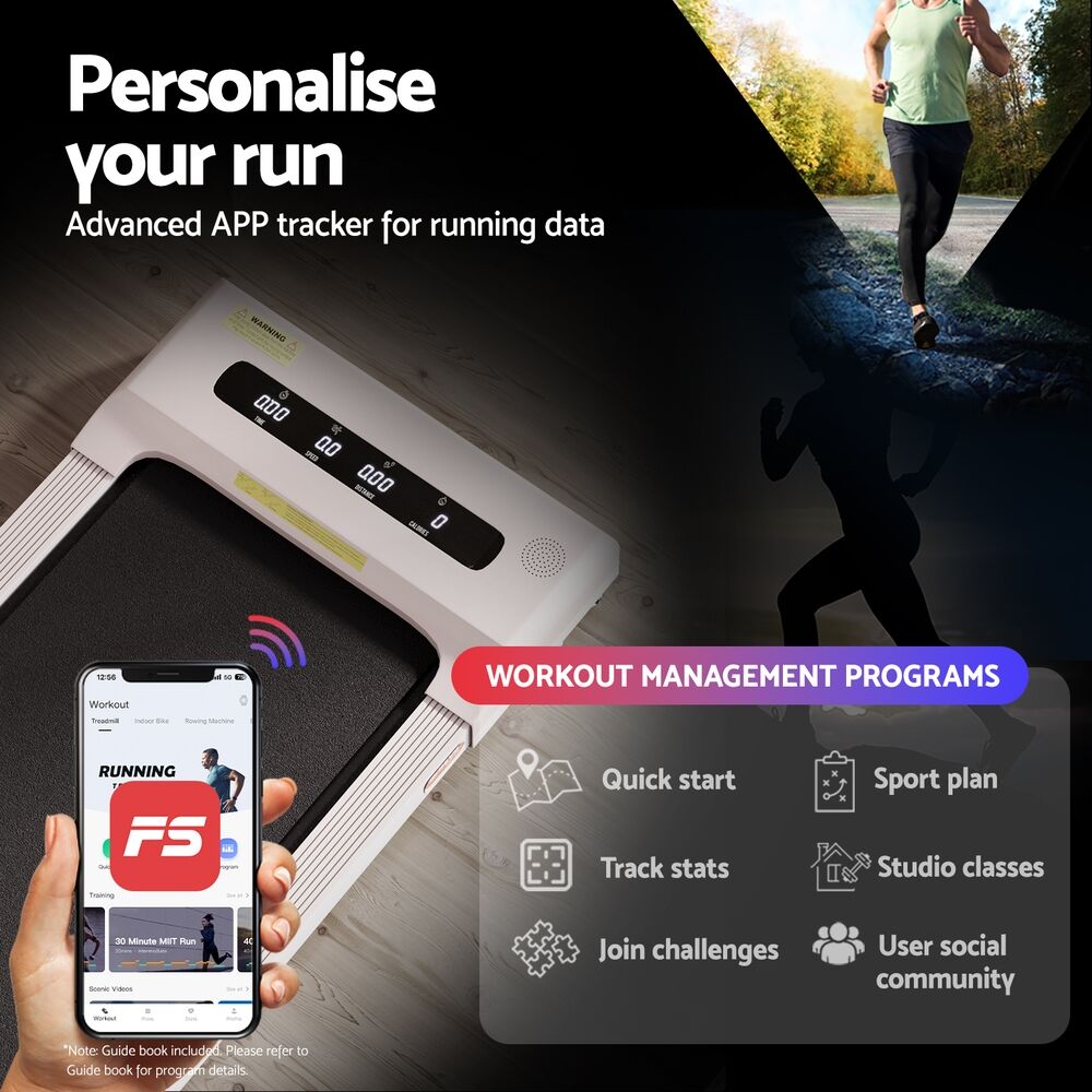 $278.99For a truly effective approach to weight loss and toning, our Everfit Walking Pad is your perfect companion. Compact and sturdy, the walking pad allows you to perform essential cardio exercises within the comfort of your home. It is foldable, easy to move, and comes ready to hit the ground running no assembly required. Controlled by either the companion app or remote control, set up speeds of between 1km/h and 10km/h and monitor speed, time, distance and calories. Its powerful and energy-efficient motor produces smooth and seamless operation and the anti-slip belt phone holder makes your session a comfortable and controlled experience. The running belt uses an enhanced shock control system to help reduce the risk of joint injury, making the walking pad suitable for adults and seniors. When all the hard work is done, easily fold and store away the compact walking pad. Other great features include smooth wheels for easy mobility and Bluetooth speakers for entertainment while exercising. For health results that matter, our fitness walking pad is the one to run to.