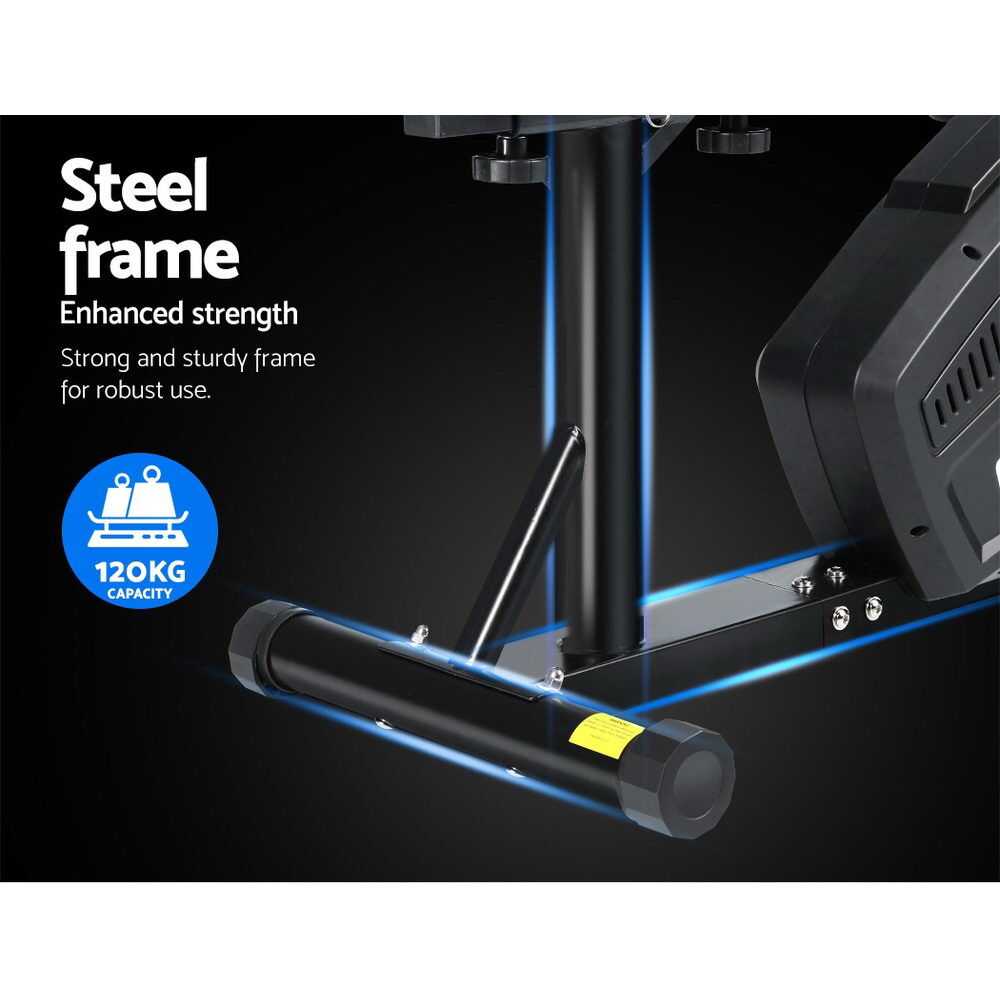 NOW $298.48Get an effective workout in the comfort of your home while watching TV or listening to your favourite music. The Everrfit Recumbent Exercise Bike is just perfect to have all these at once. Designed for people who prefer a low or non- impact exercise regime, our recumbent bike provides adequate exercise for the body without causing undue stress and strains on your joints and back. The relaxed seating position actually allows you to balance your body weight better and get your legs and heart to work together in tandem for better blood flow. The LCD display also helps to track parameters easily to let you monitor your health while exercising. The bike itself is constructed of an industrial-strength power-coated steel frame for durability and rust resistance. With up to eight resistance levels, the bike can be adjusted for the desired exercising intensity to suit your workout. Plus, the magnetic flywheel is smooth and runs almost friction-free. Other features include an adjustable seat length, wide and comfortable seat and non-slip protective feet. Not least, the recumbent bike is also easy to transport with two handy wheels for hassle-free moving.