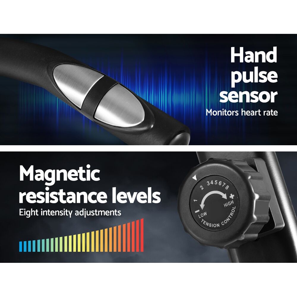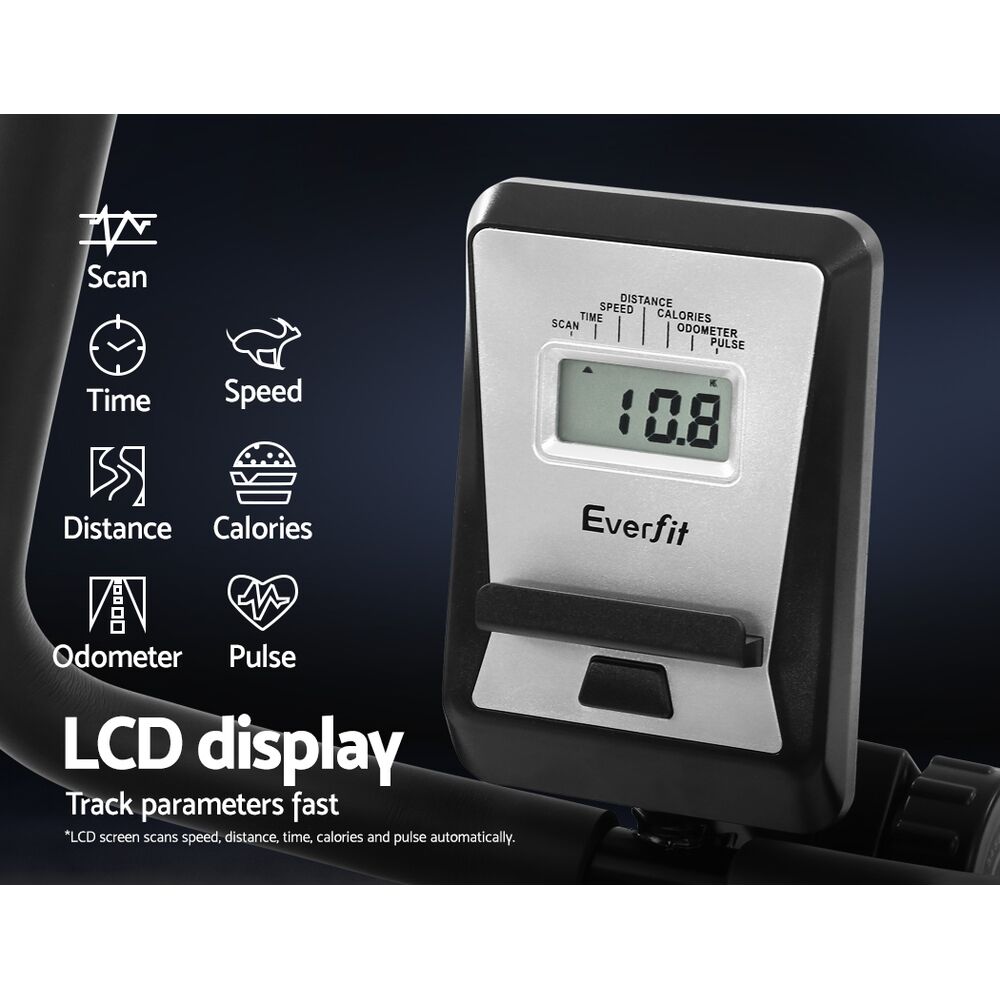$268.19Get an effective workout in the comfort of your home while watching TV or listening to your favourite music. Our Everfit Recumbent Exercise Bike is just perfect to have all these at once. Designed for people who prefer a low or non-impact exercise regimen, our recumbent bike provides adequate exercise for the body without causing undue stress and strains on your joints and back. The relaxed seating position actually allows you to balance your body weight better and get your legs and heart to work together in tandem for better blood flow. The LCD display also helps to track parameters easily to let you monitor your health while exercising. The bike itself is constructed of an industrial-strength power-coated steel frame for durability and rust resistance. With up to eight resistance levels, the bike can be adjusted for the desired exercising intensity to suit your workout. Plus, the magnetic flywheel is smooth and runs almost friction-free. Other features include an adjustable seat length, wide and comfortable seat and non-slip protective feet. Not least, the recumbent bike is also easy to transport with two handy wheels for hassle-free moving.