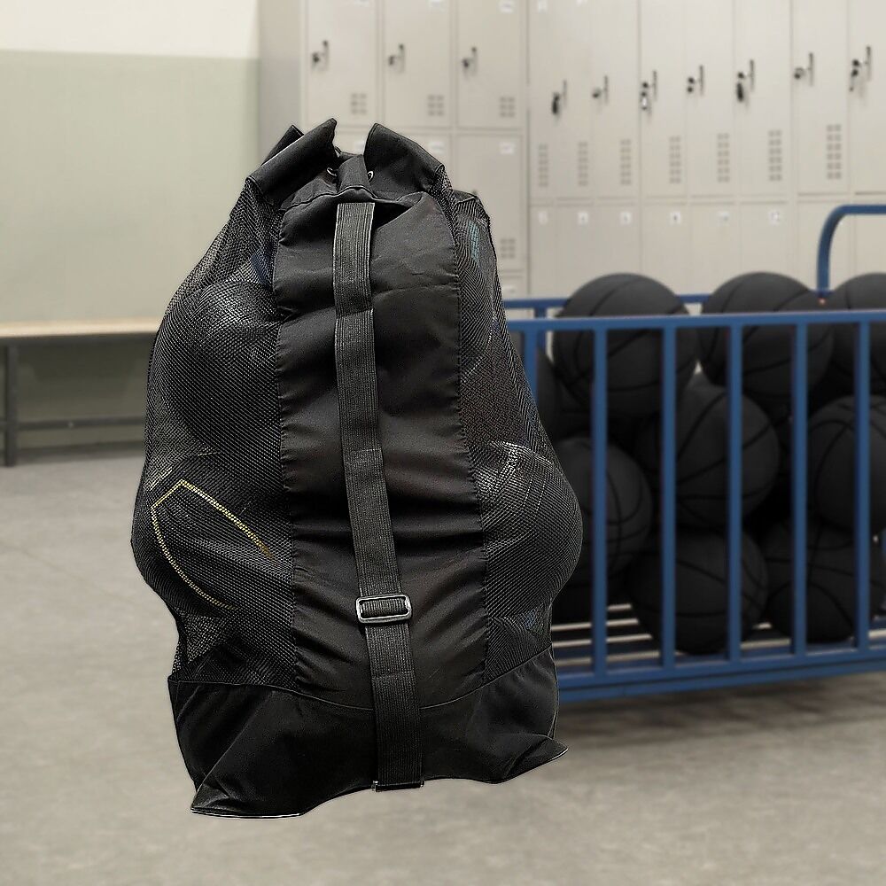 A wide, adjustable shoulder carry strap makes life more comfortable for the individual who has to carry the balls from one place to another.