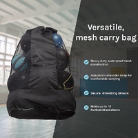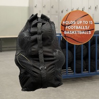 Constructed from heavy-duty canvas and net, the bag holds up to fifteen basketballs, footballs or similarly sized balls. As well as balls, it can also be used to carry other pieces of training equipment. The waterproof mesh can safely hold balls in any condition - if they're wet or muddy after play, they can still be slung into the bag and transported. A secure, hard-wearing drawstring closure ensures no balls escape in transit!