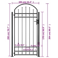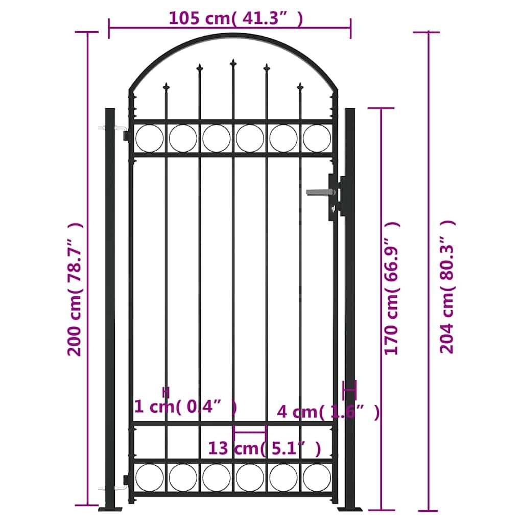 $259.19This garden gate will make a contemporarily styled, practical entryway to seclude your garden from the outside world. Highly stable and durable, the fence gate will form a practical security barrier for your garden, patio or terrace. With its elegant, arched top design and strong horizontal braces to reinforce the frame, our garden gate will provide a high degree of security, while forming a fabulous entryway onto your property. Manufactured from heavy-duty steel, the gate is powder-coated against rust and corrosion. This gate comes with two solid posts along with sturdy hinges for easy installation, and a heavy-duty locking system with three matching keys is also included in delivery. This garden gate is a great combination of style, strength, stability and corrosion resistance!