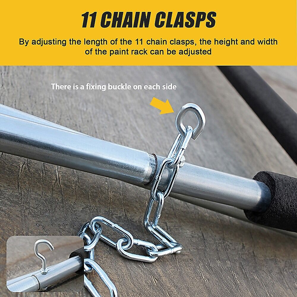 Equipped with a heavy gauge chain and 6 connectors, you can easily adjust the height to your desired level. The legs are designed with non-skid tips, ensuring stability and preventing slipping.