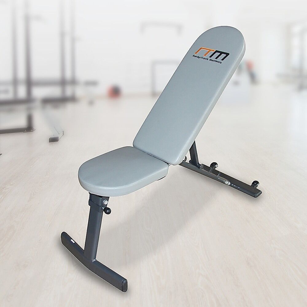 The workout bench can operate flat or with either side inclined or declined for a total of 6 positions, delivering maximum versatility for your home workout. From military presses and bench presses to bent over rows, this bench can do it all. When you're done, just fold the bench up, use the rear wheels to easily slide it around, and store it in the closet or under the bed. And of course, the workout bench features a rugged construction and top-quality materials.