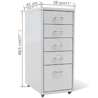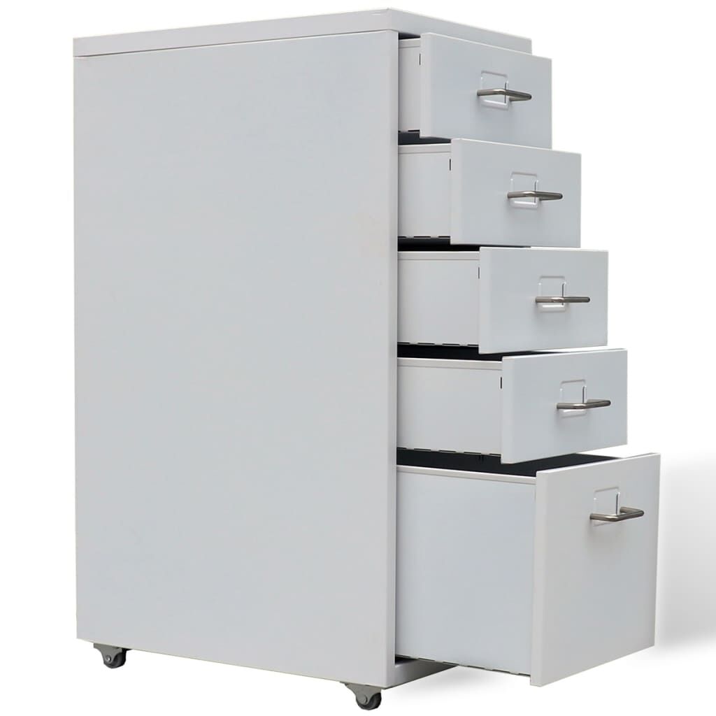 $173.69This filing cabinet, with a simple yet stylish design, will be ideal for storing different papers and office stationary, but will also make a great decorative addition to your office. With 5 drawers, this filing cabinet has ample storage space for organising different files. The castors at the bottom of this unit make it easy to move around. This drawer unit will suit any office décor thanks to its classic design. As it is made of steel, it is not only sturdy, but also easy to clean and maintain. Assembly is very easy as the necessary accessories are included in delivery.
