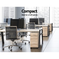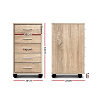 $95.36Is your office desk in a complete mess due to lack of storage? Get your desk organised with our Mobile Filing Cabinet. The modest cabinet is the ideal space-saving storage solution for your office, as it sits neatly under your desk. Despite its small footprint, five spacious drawers provide you with ample space to store all your workplace essentials. Crafted from quality particle board with smooth melamine finish and featuring anti-rust drawer runners and sleek drawer handles, the cabinet is durably constructed to ensure longlasting use and smooth operation. Better still, the cabinet has four castor wheels, with two lockable, allowing you to easily wheel it around desk to desk or room to room. Best of all, the modernistic design with neutral wood tone means it will suit any decor and will be the perfect addition to your living room, study room or children's desk.
