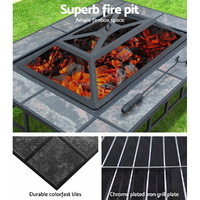 Featuring a sturdy powder coated steel frame with modern rustic ceramic tile table top, this fantastic multipurpose outdoor table is a great decorative and practical addition to any garden! It is an open-air BBQ table, a cozy fire pit, and an ice bucket table. This pioneering 3 in 1 innovation is designed to make the most of your outdoor entertaining area.