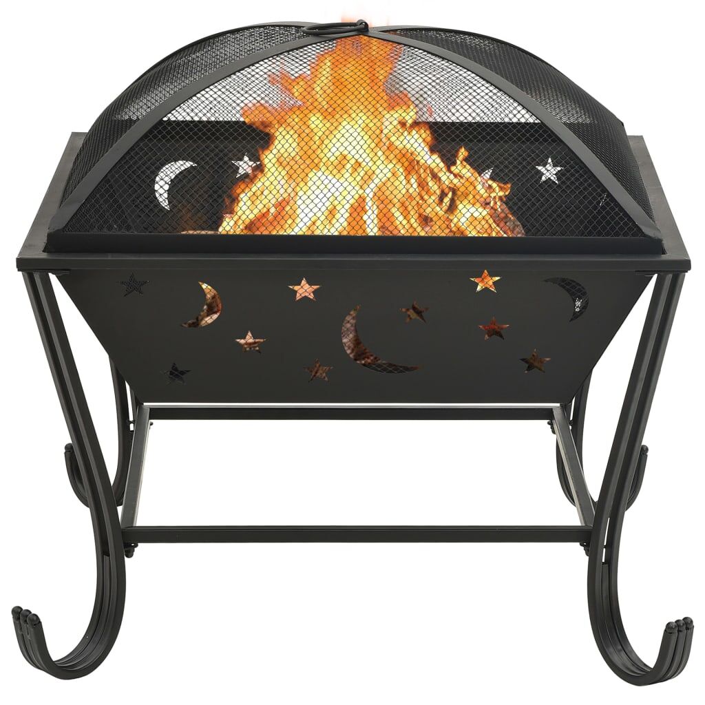 $153.89This fire pit will make a decorative and atmospheric addition to your garden or patio, while also keeping you warm when it gets colder in the evening. Made of steel, the fire pit is excellent in absorbing and radiating heat. Featuring a large and deep bowl, this fireplace allows for a large fire for you and your family to enjoy for hours. The mesh allows you to watch the burning fire, and encloses the fire for safety as well as preventing sparks and debris from flying out. Additionally, there is a convenient ring in the mesh cover so that you can carry it easily. The included metal poker can be used for both removing the mesh cover and rearranging the logs. Important notes: It can only be used outdoors. Do not touch the product when there is still burning wood inside or short after it.