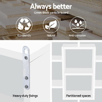 $57.59Our Artiss Floating Display Shelf is designed for multiple uses. From a freestanding floor shelf to a wall-mounted floating option, or in horizontal or vertical orientations, the display shelf looks stylish and is practical in every way. The design is simple and timeless and will easily match any decor. Plus, the shelf comes with eight partitioned spaces in varying shapes and sizes to fit an assortment of displays to reflect your lifestyle. Use it as a focus feature or as a complementary piece, the 12mm thick particle board display shelf with smooth melamine finish is sturdy and durable and easy to maintain.