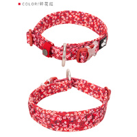 Floral doggie collar. This stylish Dog collar is padded and super comfortable. It can be accessorised with the matching lead and harness. Easy to secure with a durable snap buckle. Easy to put and take off with. Features an O ring for secure leash attachment.