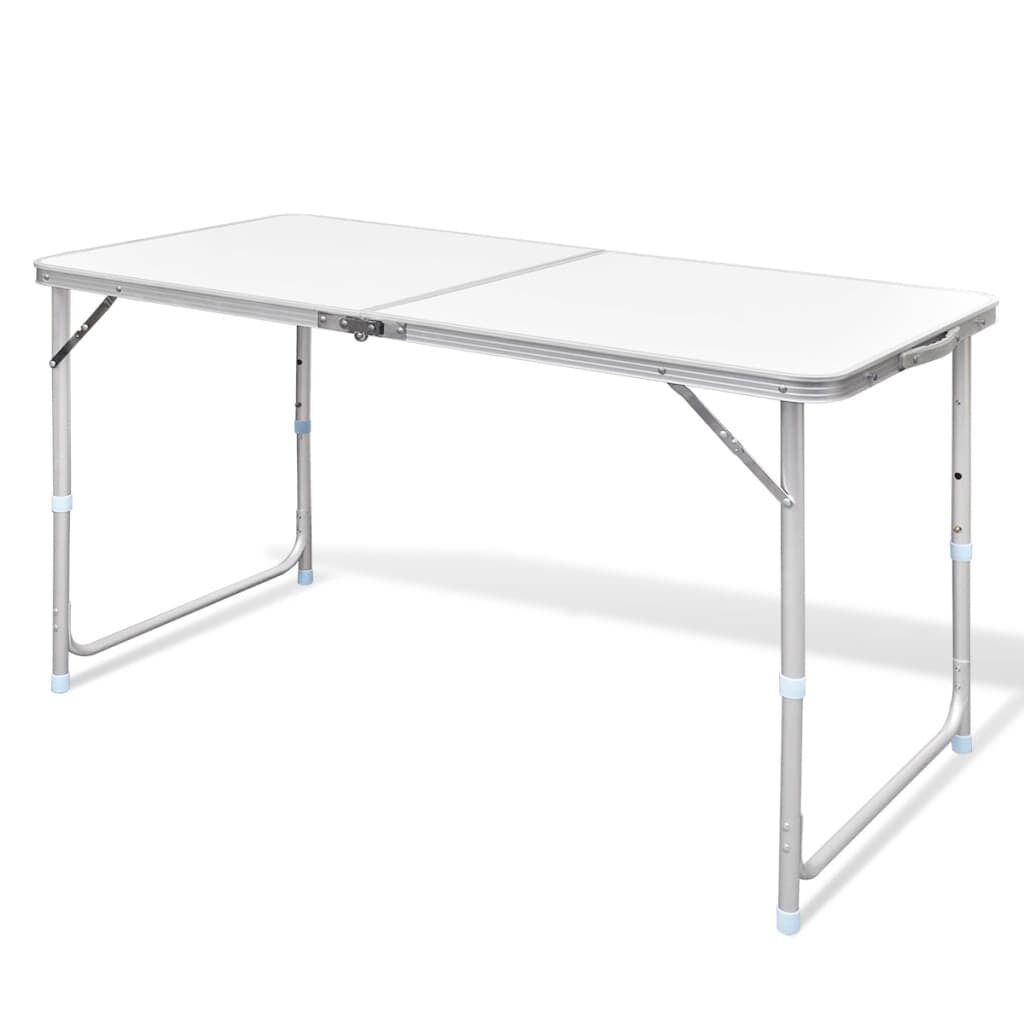 $89.99This foldable camping table with practical carrying handle will come in handy in kitchens, on patios, in gardens, and on picnics or camping trips. The table height can be adjusted to 55 cm, 62 cm and 70 cm. The camping table is light in weight. Thanks to the folding design, this camping table is easy to transport and can be stored away quickly when not in use. The carrying handle makes it very easy to bring the table with you when going out to have a picnic or camping trip. Thanks to the sturdy structure, this camping table has a high load capacity of up to 30 - 50 kg. Thanks to the metal frame and the robust MDF tabletop, it is highly stable and durable.