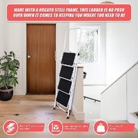 Safety features of this four-step ladder include non-slip steps with rubber surfaces and dual handrails. The step-ladder is foldable and lightweight and can be easily stowed away in a handy spot for quick access. You'll be surprised how often you'll need to use this great step-ladder for household chores.