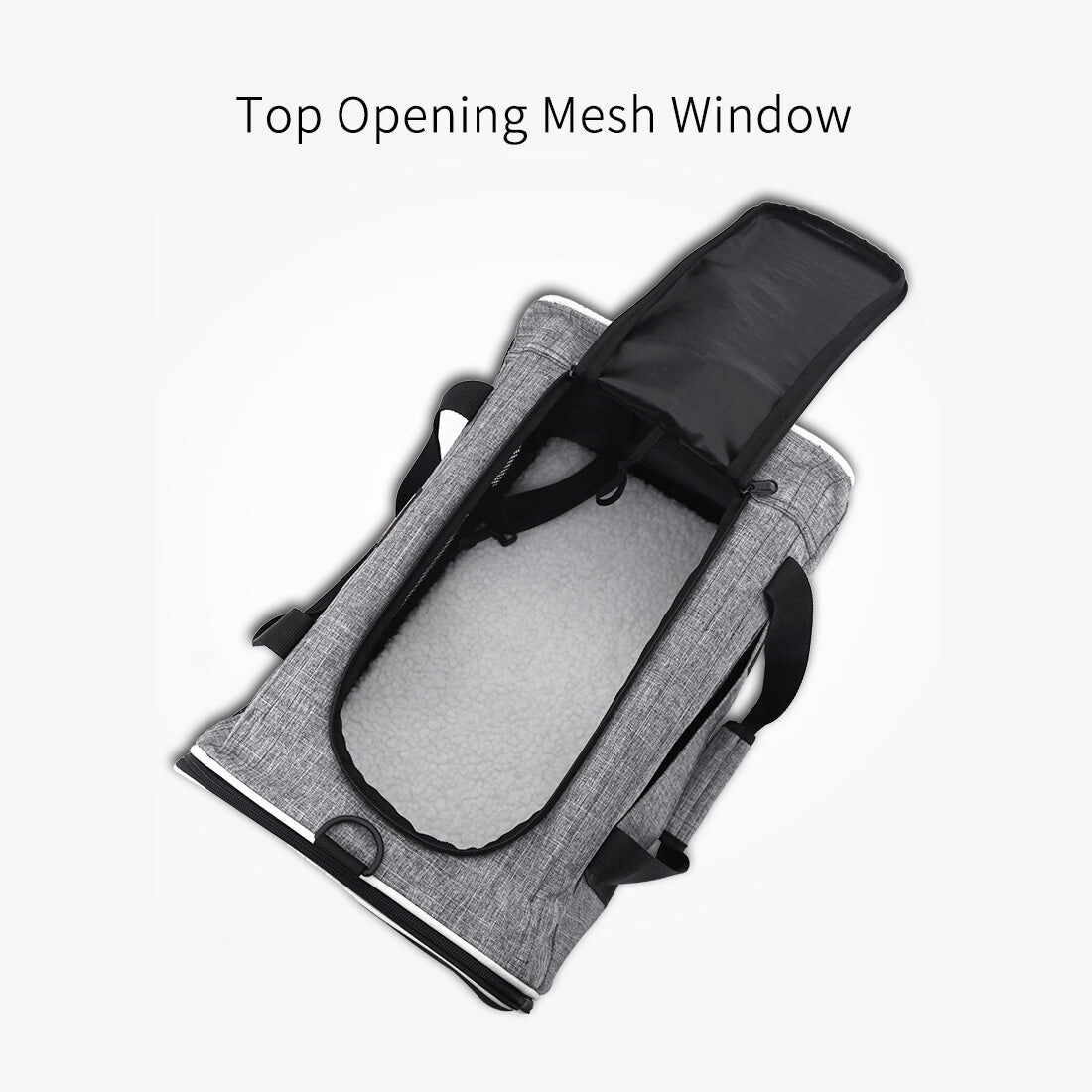 WATERPROOF DURABLE -This cat carrier is made of durable, lightweight cationic fabric and mesh cloth. The side mesh will not only give a safe and comfortable travel for your pet, but also easy for you to check on your pet .