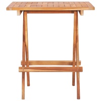 $125.50This folding wooden teak bistro table has an elegant design and will make a great addition to your garden, terrace or patio for al fresco dining or just relaxing outside. It is also ideal for indoor use. Constructed from extremely durable teak hard wood, this piece of teak furniture has been seasoned, kiln dried and then fine sanded to give a very smooth appearance. Teak wood is known for its exceptional strength and weather resistance, making it far more suitable for garden furniture than any other kind of wood. Teak wood is the perfect choice if you want to purchase a long lasting piece of garden furniture. You can keep its natural colour or add a coat of paint or other finish in your favourite colour. The sanded surface is easy to clean with a damp cloth. The picnic table is also lightweight and easy to move around. The table can be folded to save space when not in use. We recommend to treat the product with teak oil or a waterbase finish to increase its lifetime.