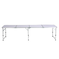 Made of strong aluminium throughout, the Camping Table can handle up to 40kg in weight with its very spacious, rust-resistant MDF table top. Better still, the 240cm long Camping Table has three adjustable height settings of 54cm, 61cm and 69cm to accommodate various user environments. Not least, the rounded corners ensure the Camping Table is safe to use around kids and adults at all times.