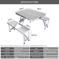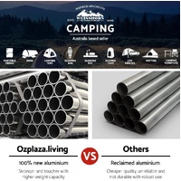 Made of strong aluminium throughout, the Camping Table can handle up to 40kg in weight with its rust-resistant MDF table top. The four integrated seats have a weight capacity of 100kg per seat, which makes the seats suitable for anyone to use. Not least, the rounded corners ensure the Camping Table is safe to use around kids and adults at all times.