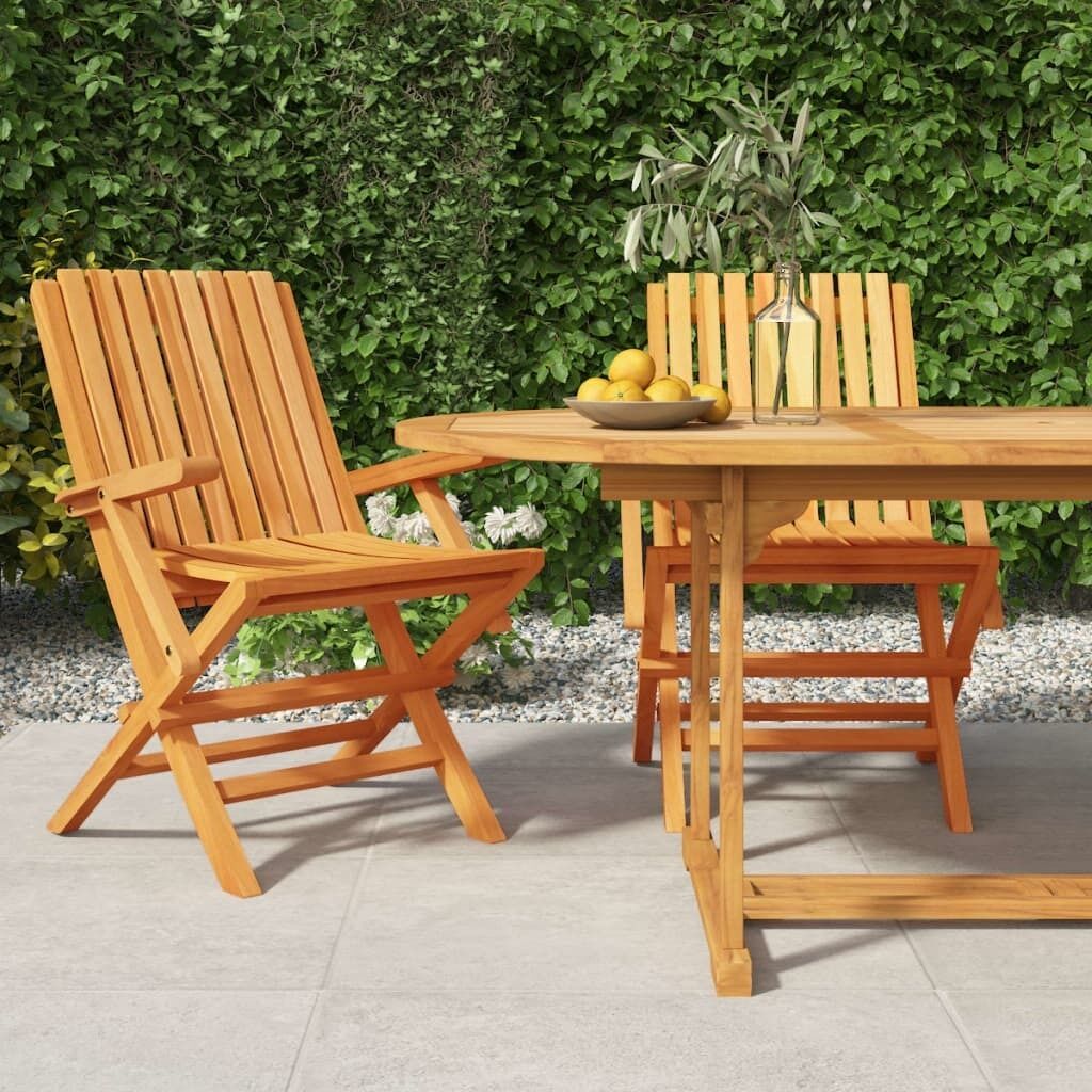 $169.21Enjoy a cosy leisure time with your family and friends in your outdoor space on these wooden folding garden chairs! Solid teak wood: Solid teak wood is a beautiful natural material. It has been seasoned, kiln dried and then fine sanded to give a very smooth appearance. Teak wood is known for its exceptional strength and weather resistance.Foldable function: The garden chair can be folded away to save space when not in use.Comfortable experience: The backrest of the garden seating gives you excellent support, providing an optimal comfortable experience.Slatted design: The outdoor chair with a slatted design looks simple and timeless. Note:To make sure your outdoor furniture stays beautiful, we recommend protecting it with a waterproof cover.Good to know:To make assembly as easy as possible, each product is delivered with a manual.