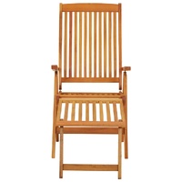 $194.36These wooden garden chairs will make a great addition to your garden, terrace or patio. Solid eucalyptus wood: Solid eucalyptus wood is a beautiful natural material. Eucalyptus wood is extremely dense and water repellent.Comfortable reclining positions: The outdoor chair features a backrest which can be adjusted in 5 positions, so you can always find a comfortable position.Practical footrests: The extendable footrests of these wooden garden chairs complete the chairs' classic design and make them even more comfortable.Fodable design: These solid wood garden chairs can be folded to save space when not in use. You can easily carry them with you anywhere on your outdoor trips. Note:In order to extend the life of your outdoor furniture, we recommend you to clean it regularly and do not leave it outdoors without protection unnecessarily.Clean: Use a mild soap solution.Storing: If possible, store in a cool, dry place indoors. If the product is stored outdoors, protect it with a waterproof cover. Wipe and dry the excess water or snow from flat surfaces after a rain or snowfall. Allow sufficient air circulation to avoid moisture-related damage.