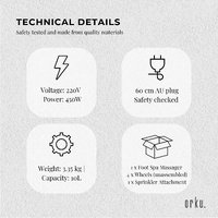 $212.03The Orku foot spa massager is an advanced, smart and compact device for any home or salon. This innovative automatic water temperature controlled bath features a high tech, one button start, LCD touch control panel, and comes with a remote control to conveniently adjust your massage to you liking.