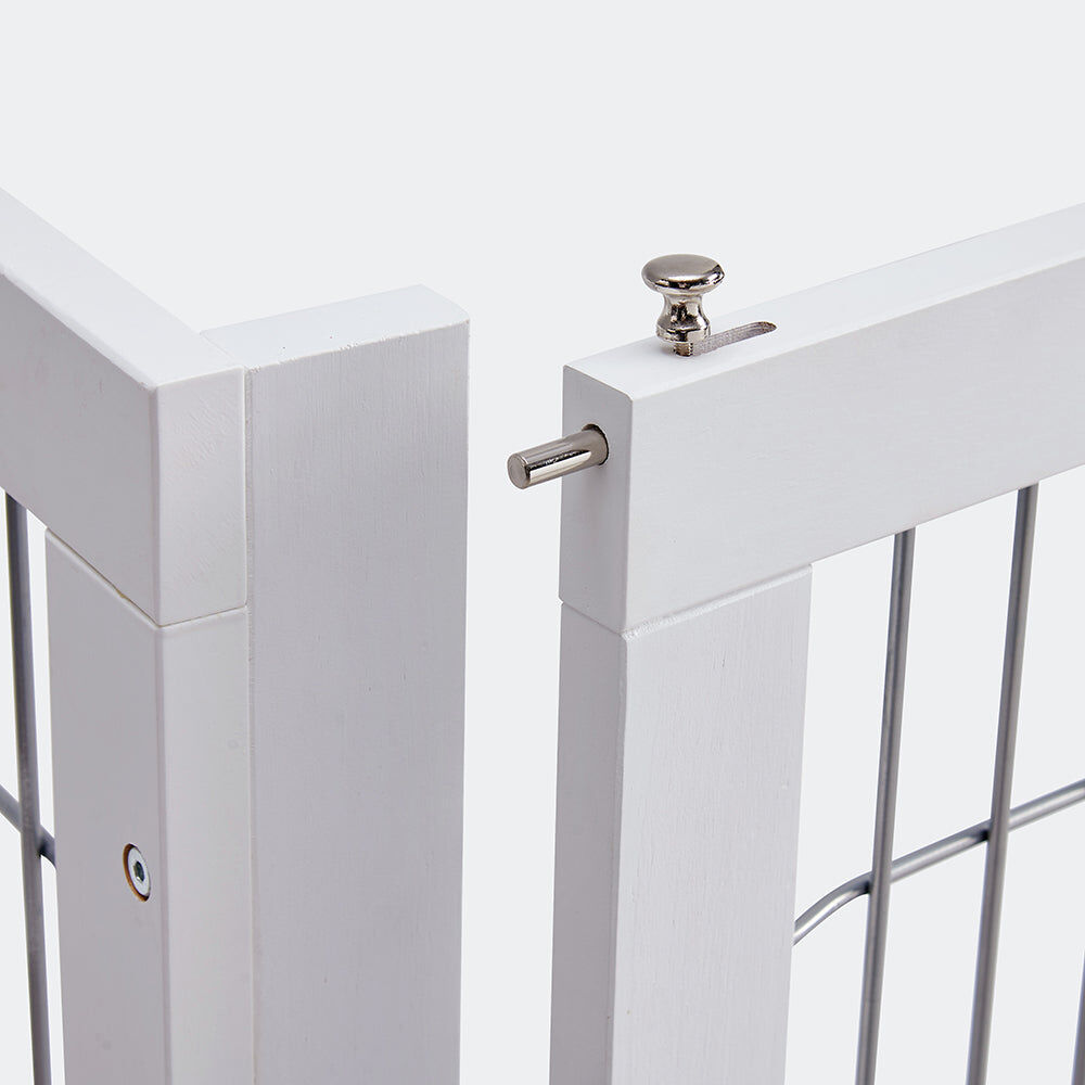 Designed for both functionality and aesthetics, this gate seamlessly integrates into your home with its sleek white finish. Effortless installation, sturdy construction and ingenious features make it perfect for blocking off doorways, hallways and staircases. Managing pet access and creating designated pet-friendly zones has never been this easy. Elevate your pet safety measures and ensure a harmonious living environment with the Modern Pets Retractable Dog Gate.