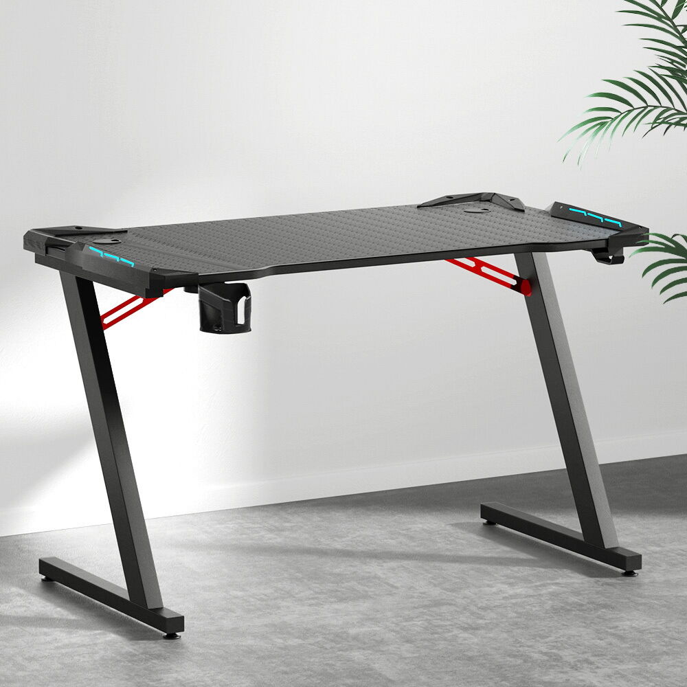 Setup your home gaming station with gaming desk. Designed for avid gamers, this gaming table is both stylish and practical. The gaming table is equipped with RGB light effects. It comes in seven different colours, which you can adjust according to your preference. You can even adjust its brightness. It’ll enhance your gaming experience. To make your gaming experience more convenient, this gaming table has spacious and sturdy surface, which means you have enough room to keep your gaming PC, monitor, keyboard, mouse, and other essentials. For ultimate durability and sturdiness, the gaming table features powder-coated solid steel frame with P2 PB melamine table material and 18mm thickness. It has 90kg weight holding capacity. Furthermore, the table features sleek, z-shaped legs, which ensures ultimate stability and prevents shaking. It also has adjustable foot pad for better support. For ease of use and additional convenience, this gaming table boasts carbon fibre texture that makes it waterproof, non-slip, and easy to clean. It also has an adjustable cup holder, headphone hook, and built-in cable management system and comes with one year warranty. With so much that it has to offer, bring home this gaming table to take your gaming session to the next level.