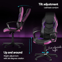 $127.29With its distinct and comfortable design, the Artiss Gaming Chair is perfect for the professional gamer or executive. Upholstered in premium PU leather and breathable mesh, the chair seat is richly padded and comfortable thanks to its high-density sponge padding. The plywood frame keeps the chair firm in the right places for adequate support. Taking its design cues from a racing car seat, the high-back body wrap chair also features two holes near the headrest for ample ventilation. Strong PP armrests give you a place to rest your weary arms after long hours of typing, clicking or flipping through documents. The chair features a gas lift for 360-degree rotation and height adjustment, and the stylish nylon base has five castor wheels, ensuring you can cruise anywhere smoothly. Best of all, the chair features tilt adjustment so you can get the perfect angle for working, gaming or napping. Whatever drives you, our gaming chair will give you the utmost comfort and support.