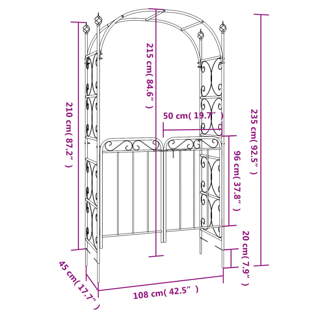 $262.79This eye-catching garden arch with a gate brings classic style and practicality into your outdoor space. Stable material: Steel is an exceptionally hard and strong material. It offers sturdiness and stability. The powder coating on steel creates a protective layer against wear and tear.Gate design: This garden arch features a lockable gate which features refined looks while creating a sense of separation and privacy between areas of your garden.Sturdy frame: The sturdy powder-coated steel structure of the garden pergola is strong enough to support many vibrant climbing plants.Multiple uses: You can plant your favourite climbing plants on the rose arch according to different seasons. You can even DIY decorate the garden arbour with tulle, balloons and lights.Wide applications: The beautiful garden arch trellis is a perfect addition as an entrance, passage or for decorating your garden path. Good to know:To make assembly as easy as possible, each product is delivered with a manual.