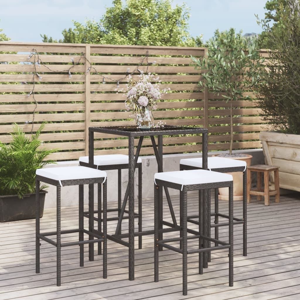 $224.12This trendy garden bar set, combining both style and function, is surely meant to be the centrepiece of your garden, patio, and any other living space. Weather-resistant material: PE rattan, also known as poly rattan, is weather resistant and easy to clean. It remains beautiful on the outside for a long period of time. It offers great quality, convenience and an aesthetic look.Comfortable seating: The bar stool is designed with a built-in footrest to offer you a comfortable seating experience. The thickly padded seat cushion provides ultimate comfort during your sitting time.Tempered glass tabletop: The tabletop is made of tempered glass, making it easy to clean. Additionally, it offers excellent support for holding your drinks, snacks, and your favourite decorations.Sturdy and stable frame: The powder-coated steel frames make the pub set sturdy and stable for daily outdoor use.Wide applications: The bar table and stool, with its remarkable design, creates a pleasant overall appearance that integrates effortlessly into any environment. Good to know:To make assembly as easy as possible, each product is delivered with a manual.Note:To make sure your outdoor furniture stays beautiful, we recommend protecting it with a waterproof cover.