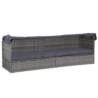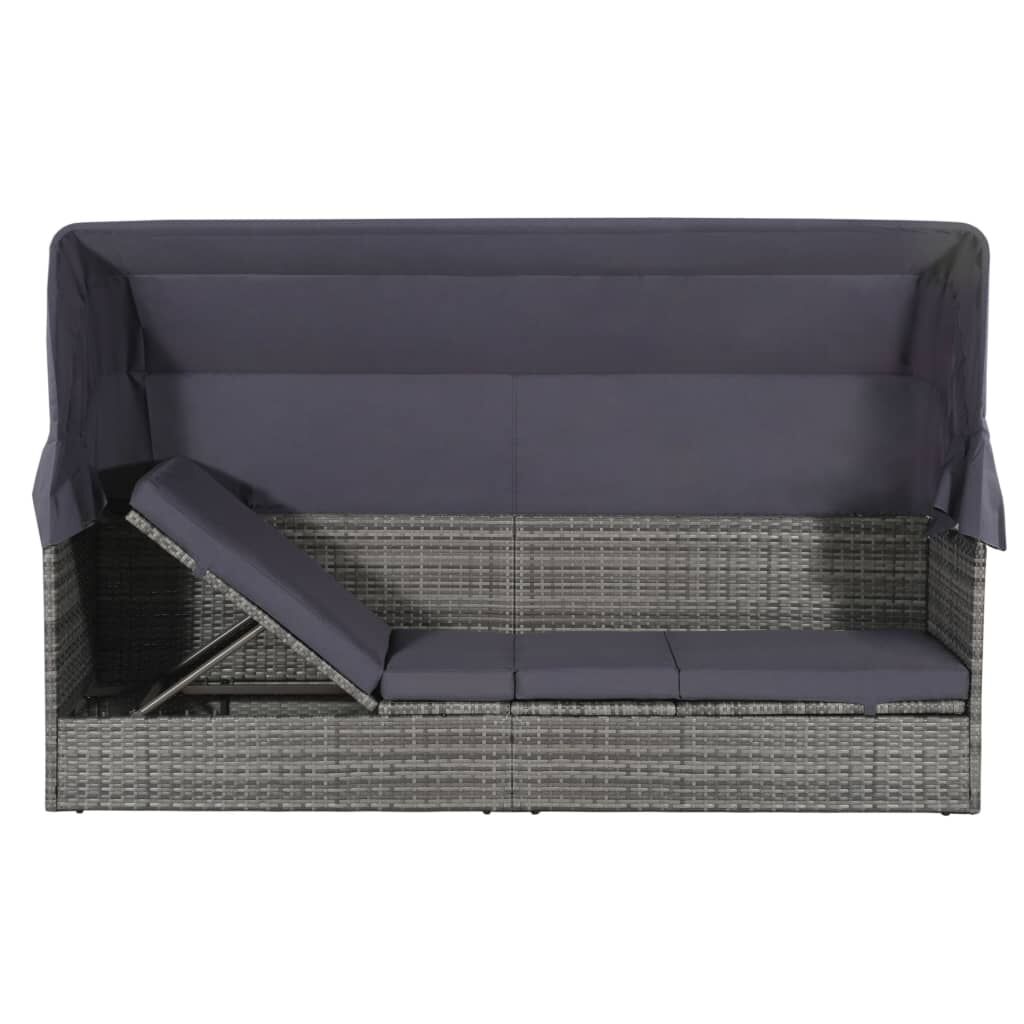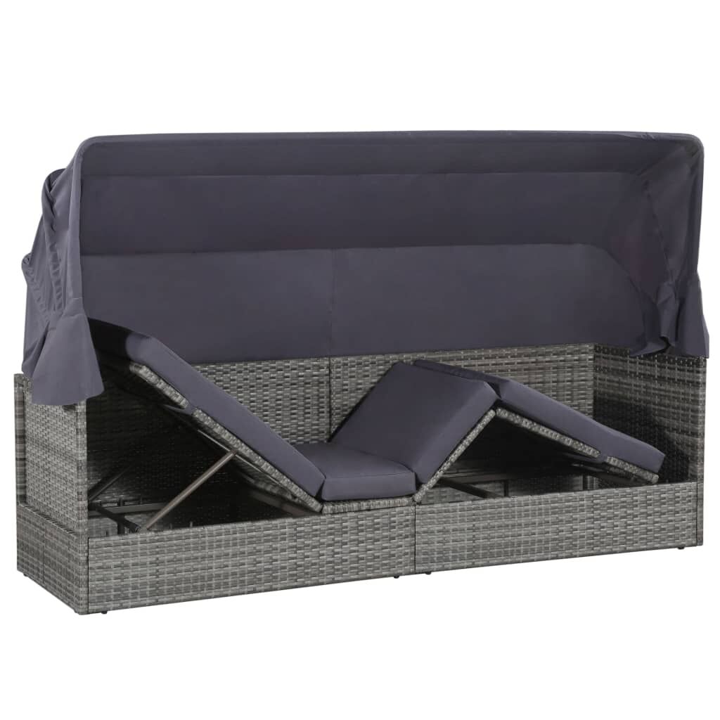 $436.99This lounge bed will be an ideal hideaway for relaxing and enjoying your leisure time near the swimming pool, in your garden or on your patio. The sun lounger is made of water-resistant PE rattan, which is easy to clean, stain resistant, hardwearing and suitable for daily use. The sunroof also protects you from the hot sunlight when you read or relax in summer days. The lying area can be adjusted in various settings for the most comfortable position. The steel frame makes this sunlounger sturdy and stable. It is also delivered with a highly comfortable, thickly-padded seat cushion for the ultimate comfort. The low-maintenance polyester cover can also be removed and washed. Delivery includes a lounge bed with canopy and a large seat cushion. Please note: We recommend covering the lounge bed during rain, snow and frost for its best service to last.