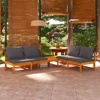 The garden bench is made of solid acacia wood, a hardwood with dense grains. This beautifully-designed outdoor bench is stable, durable and eye-catching. Additionally, the exquisite craftsmanship and beautiful wood grains make every piece slightly different from the next. The included cushions add more comfort while resting. In addition, the table can be assembled both on the left or right side according to your demands.