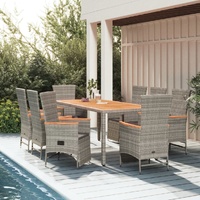 $301.31This trendy garden dining set, featuring an elegant and contemporary design, is a great choice for dining or relaxing in your garden. Weather-resistant material: PE rattan, also known as poly rattan, is weather resistant and easy to clean. It remains beautiful on the outside for a long period of time. It offers great quality, convenience and an aesthetic look.Sturdy frame: The powder-coated steel frames make the outdoor dining set sturdy and stable for daily outdoor use.Practical tabletop: The sturdy tabletop is perfect for placing meals, drinks, and other decorative items.Modular design: The patio dining set is flexible and easy to move around, so you can combine it with other modular segments in the webshop to create your own personal garden dining set configurations!Reclining function: The garden chairs are specially designed with a reclining function so that you can adjust the backrest and footrest as per your comfort.Comfortable seat experience: The thickly padded cushions provide comfort for your sitting time. Good to know:To make assembly as easy as possible, each product is delivered with a manual. Note:To make sure your outdoor furniture stays beautiful, we recommend protecting it with a waterproof cover.