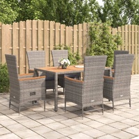 $290.15This trendy garden dining set, featuring an elegant and contemporary design, is a great choice for dining or relaxing in your garden. Weather-resistant material: PE rattan, also known as poly rattan, is weather resistant and easy to clean. It remains beautiful on the outside for a long period of time. It offers great quality, convenience and an aesthetic look.Sturdy frame: The powder-coated steel frames make the outdoor dining set sturdy and stable for daily outdoor use.Practical tabletop: The sturdy tabletop is perfect for placing meals, drinks, and other decorative items.Modular design: The patio dining set is flexible and easy to move around, so you can combine it with other modular segments in the webshop to create your own personal garden dining set configurations!Reclining function: The garden chairs are specially designed with a reclining function so that you can adjust the backrest as per your comfort.Comfortable seat experience: The backrest adds extra seating comfort for the garden chair. Also, the thickly padded cushions provide comfort for your sitting time. Good to know:To make assembly as easy as possible, each product is delivered with a manual. Note:To make sure your outdoor furniture stays beautiful, we recommend protecting it with a waterproof cover.
