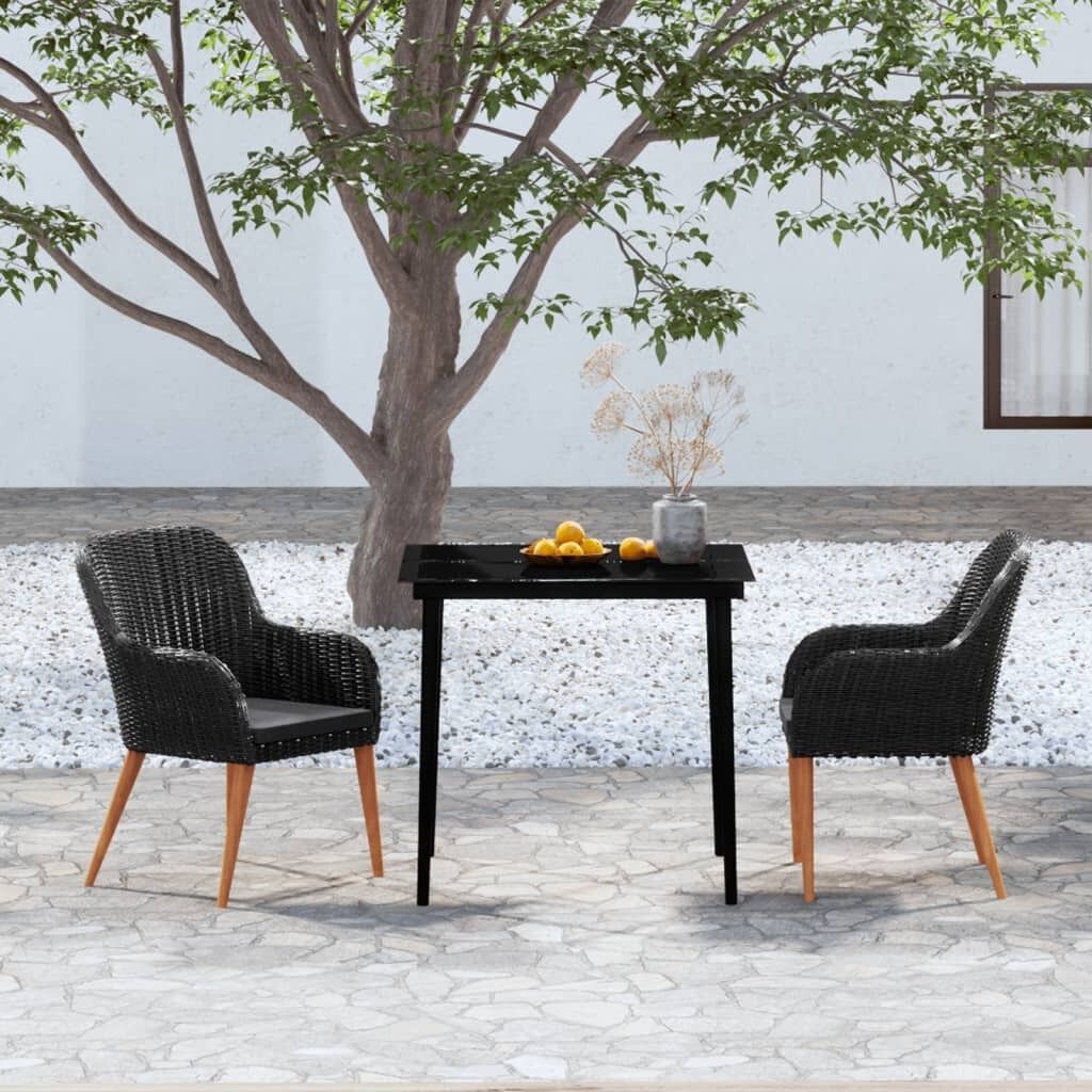 $830.48This stylish garden dining set is meant to be the focal point of your garden or patio! It is a great choice for al fresco dining or relaxing in the outdoor space! The powder-coated steel frames make the table and chairs sturdy and stable for daily outdoor use. Thanks to the water-resistant PE rattan, the chairs are easy to clean and hard-wearing. The ergonomically-designed shape and thickly-padded, removable cushions with foam filling provide the ultimate seating comfort. The low-maintenance polyester cushion covers can be easily removed and washed. Additionally, the smooth glass tabletop is easy to clean with a damp cloth and perfect for placing meals, drinks and other decorative items. Note: In order to extend the life of your outdoor furniture, we recommend you to clean it regularly and do not leave it outdoors without protection unnecessarily.Clean: Use a mild soap solution.Storing: If possible, store in a cool, dry place indoors. If the product is stored outdoors, protect it with a waterproof cover. Wipe and dry the excess water or snow from flat surfaces after a rain or snowfall. Allow sufficient air circulation to avoid moisture-related damage.