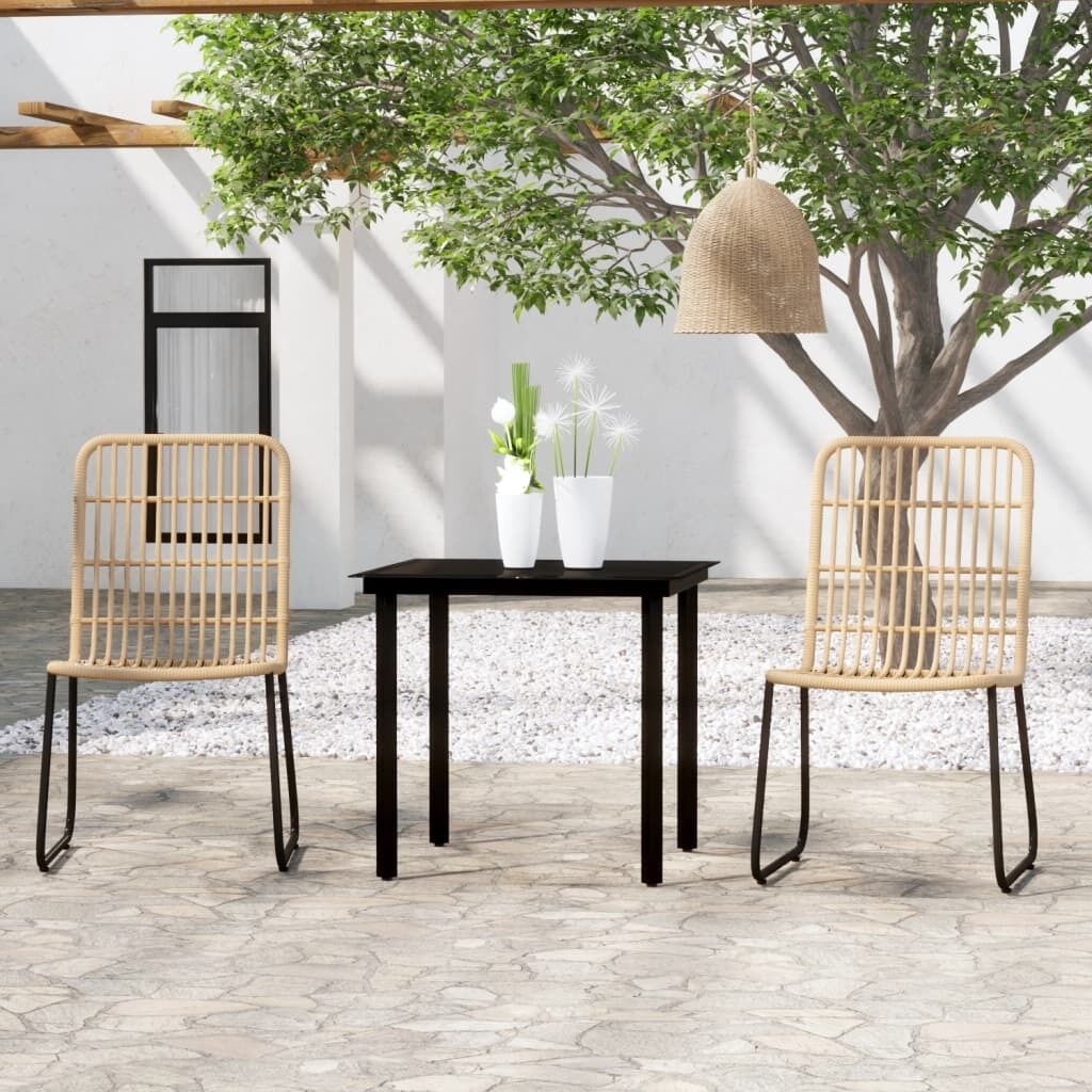 $370.13This exquisitely designed garden dining set is meant to be the focal point of your garden or patio! The steel frame makes the table and chairs sturdy and stable. As the set is also lightweight, all items are easy to move around. What’s more, the smooth glass tabletop is easy to clean with a damp cloth and perfect for placing meals, drinks and other decorative items. The garden chairs are made of PE rattan, resistant to poor weather and UV rays. Additionally, the curved backrests also add extra seating comfort for the chairs. Note: In order to extend the life of your outdoor furniture, we recommend you to clean it regularly and do not leave it outdoors without protection unnecessarily. Clean: Use a mild soap solution. Storing: If possible, store in a cool, dry place indoors. If the product is stored outdoors, protect it with a waterproof cover. Wipe and dry the excess water or snow from flat surfaces after a rain or snowfall. Allow sufficient air circulation to avoid moisture-related damage.