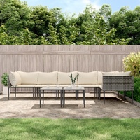 $526.49This trendy garden lounge set, featuring an elegant and contemporary design, is a great choice for relaxing in your garden. Durable material: PE rattan, also known as poly rattan, is weather resistant and easy to clean. It remains beautiful on the outside for a long period of time. It's more economical than other materials, while offering great quality, convenience and an aesthetic look.Sturdy and stable frame: The steel frames make the lounge set sturdy and stable for daily outdoor use.Comfortable seat experience: With the thickly padded seat and back cushions, the outdoor lounge set is highly comfortable.Practical table: The sturdy table is perfect for placing meals, drinks, and other decorative items.Modular design: Each piece is easy to move around, which makes it easy for you to create different layouts that fit your needs. You can also find single items in our webshop to arrange your own furniture patterns. Note:To make sure your outdoor furniture stays beautiful, we recommend protecting it with a waterproof cover.