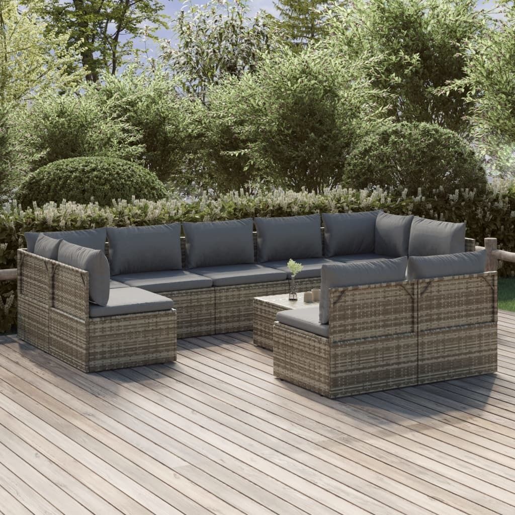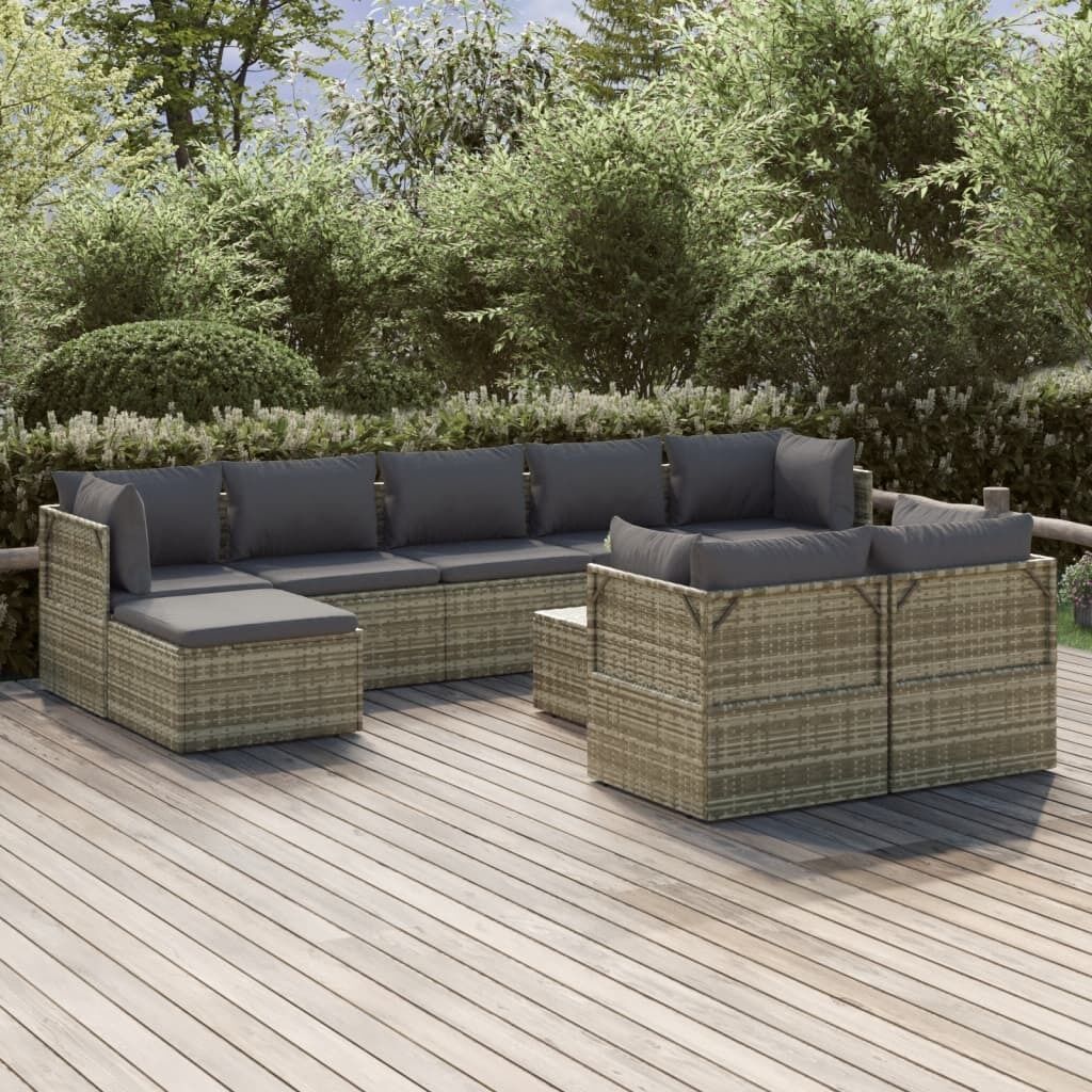 $1,285.19This trendy garden lounge set, featuring an elegant and contemporary design, is a great choice for dining or relaxing in your garden. Durable material: Poly rattan is an exceptional resistance material and durable with different weather conditions. It needs little maintenance. The steel frame ensures sturdiness and stability.Comfortable seat experience: Extra cushions and pillows are included for your comfort.Ample storage space: The storage space makes it easy to keep things organised. It is suitable for storing your cushions, pillows, blankets, toys, and other items.Waterproof bag: The waterproof bag with cover, zipper and hook-and-loop fasteners can keep your belongings safe and protect your items from moisture. Note:In order to extend the life of your outdoor furniture, we recommend you to protect it with a waterproof cover.Each product comes with an assembly manual in the box for easy assembly.