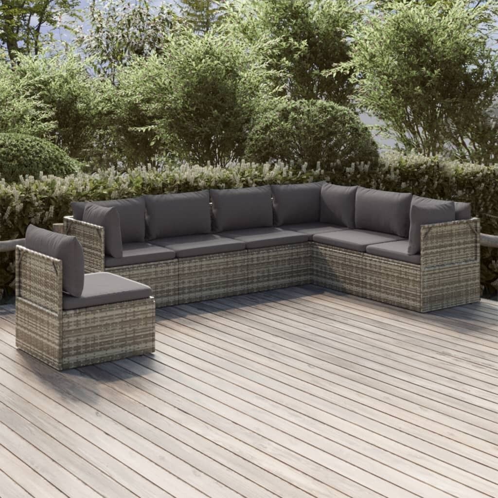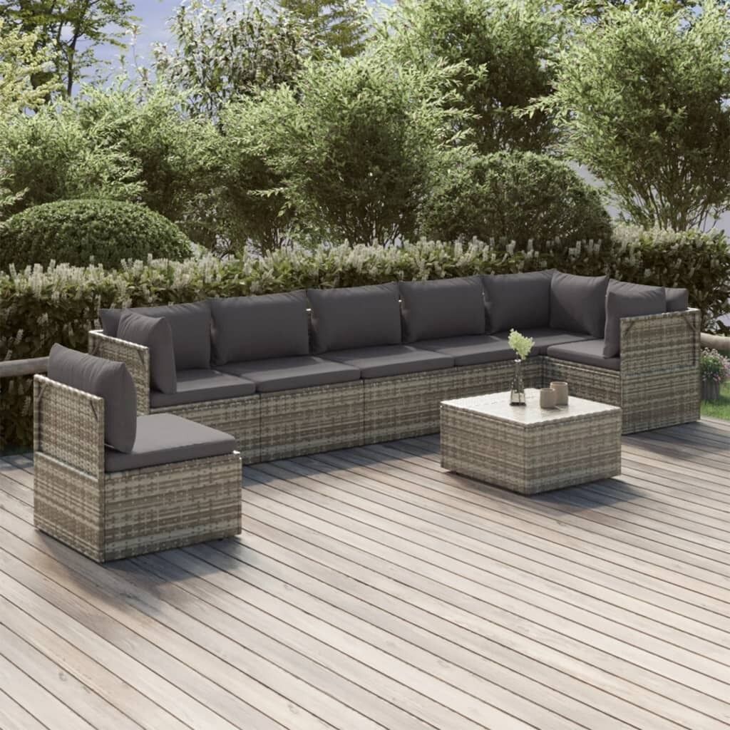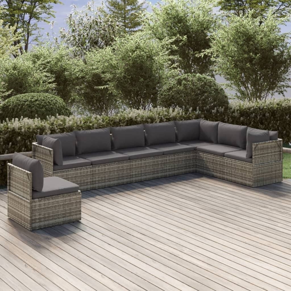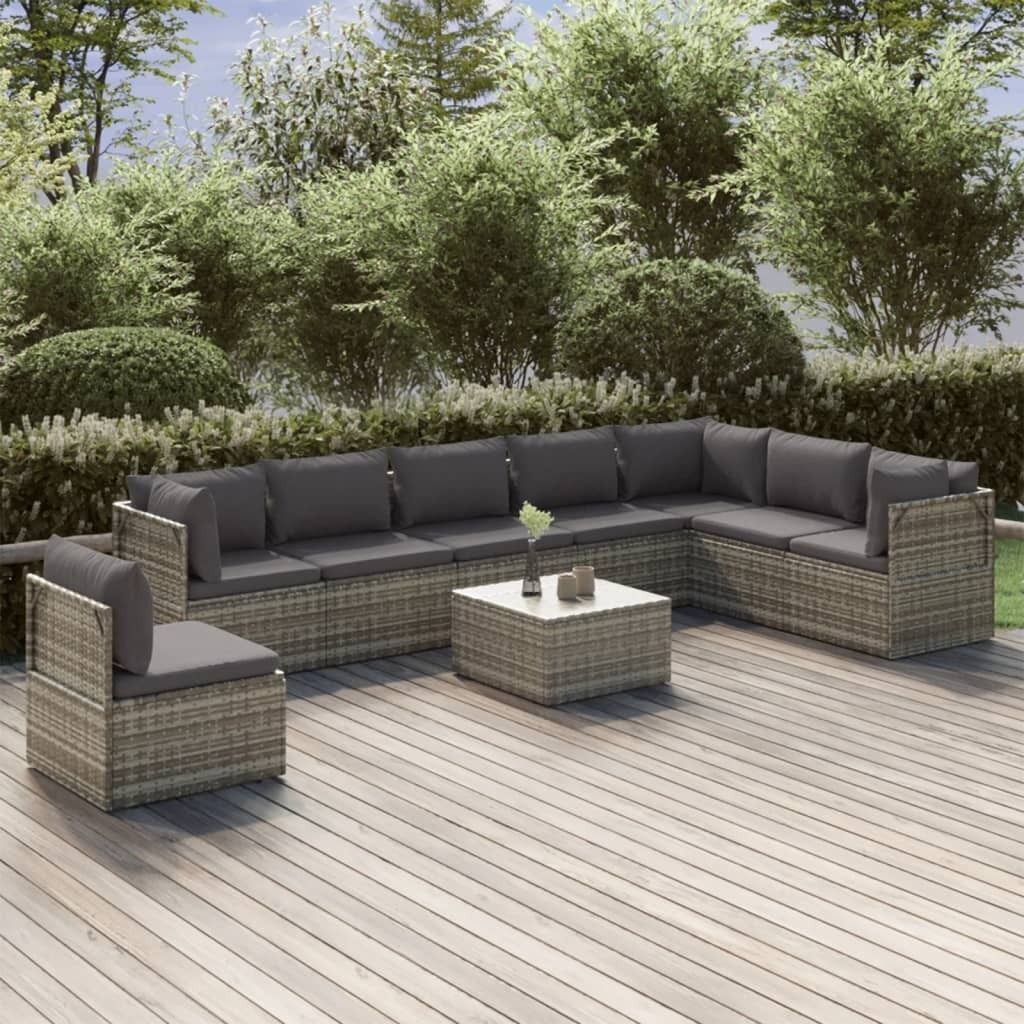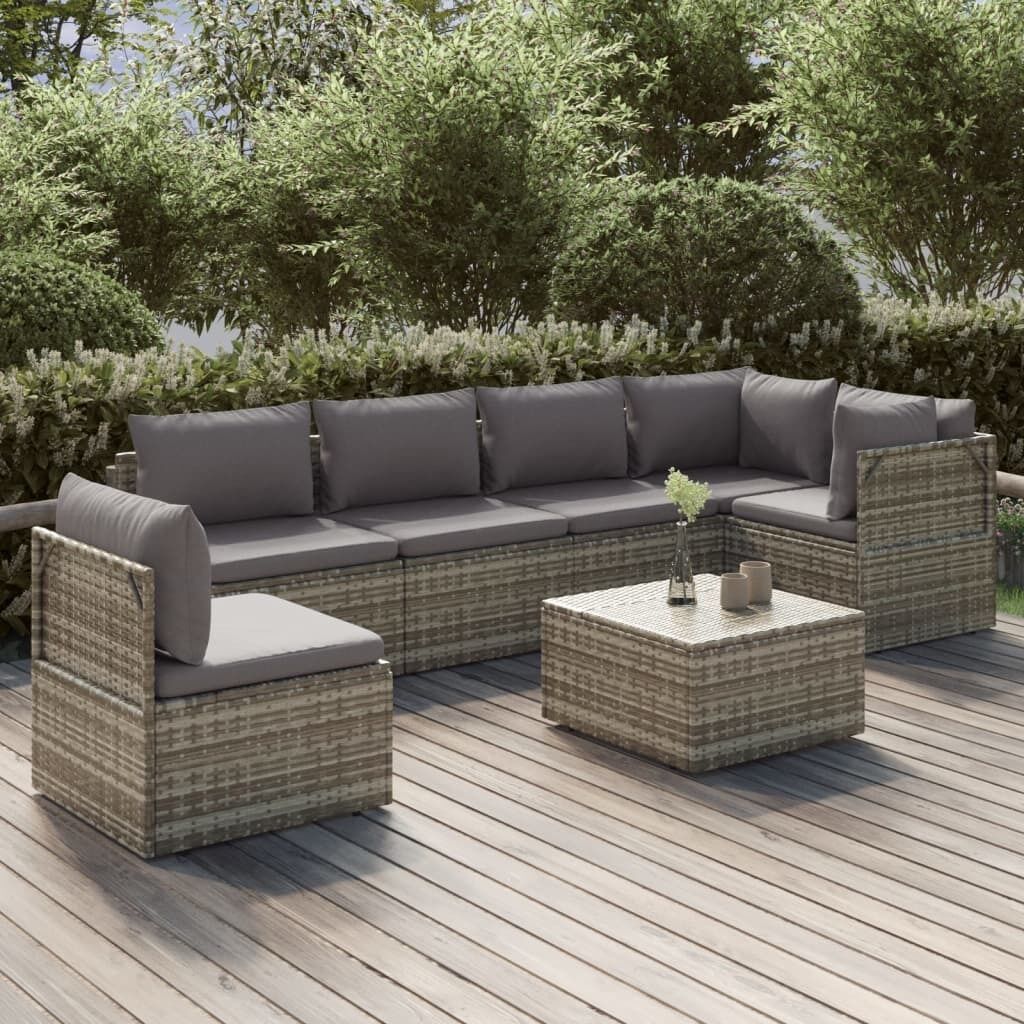 $805.49This trendy garden lounge set, featuring an elegant and contemporary design, is a great choice for dining or relaxing in your garden. Durable material: Poly rattan is an exceptional resistance material and durable with different weather conditions. It needs little maintenance. The steel frame ensures sturdiness and stability.Comfortable seat experience: Extra cushions and pillows are included for your comfort.Ample storage space: The storage space makes it easy to keep things organised. It is suitable for storing your cushions, pillows, blankets, toys, and other items.Waterproof bag: The waterproof bag with cover, zipper and hook-and-loop fasteners can keep your belongings safe and protect your items from moisture. Note:In order to extend the life of your outdoor furniture, we recommend you to protect it with a waterproof cover.Each product comes with an assembly manual in the box for easy assembly.