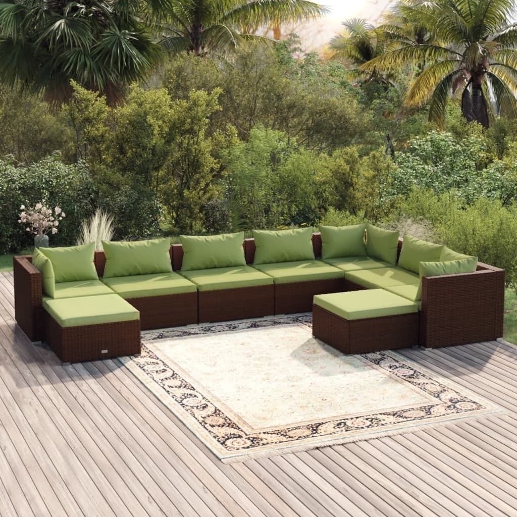 $909.89Relax and enjoy outdoor space with your family and friends on our classic poly rattan garden lounge set with cushions! Premium material: The patio lounge set is designed with weather-resistant and water-resistant PE rattan, making it easy to clean, hard-wearing and suitable for daily outdoor use.Sturdy frame: This outdoor lounge set is made with a sturdy powder-coated steel frame and plastic chrome feet that provides durability.Comfortable cushions: The thickly padded and removable cushions are made of fabric, soft to touch and bring you extra comfort.Modular design: This rattan lounge set is modular and lightweight. It is also flexible to place the set in any arrangement or combine it with other modular segments to meet your needs.Note:In order to extend the life of your outdoor furniture, we recommend you clean it regularly and do not leave it outdoors without protection unnecessarily.Clean: Use a mild soap solution.Storing: If possible, store in a cool, dry place indoors. If the product is stored outdoors, protect it with a waterproof cover. Wipe and dry the excess water or snow from flat surfaces after a rain or snowfall. Allow sufficient air circulation to avoid moisture-related damage.