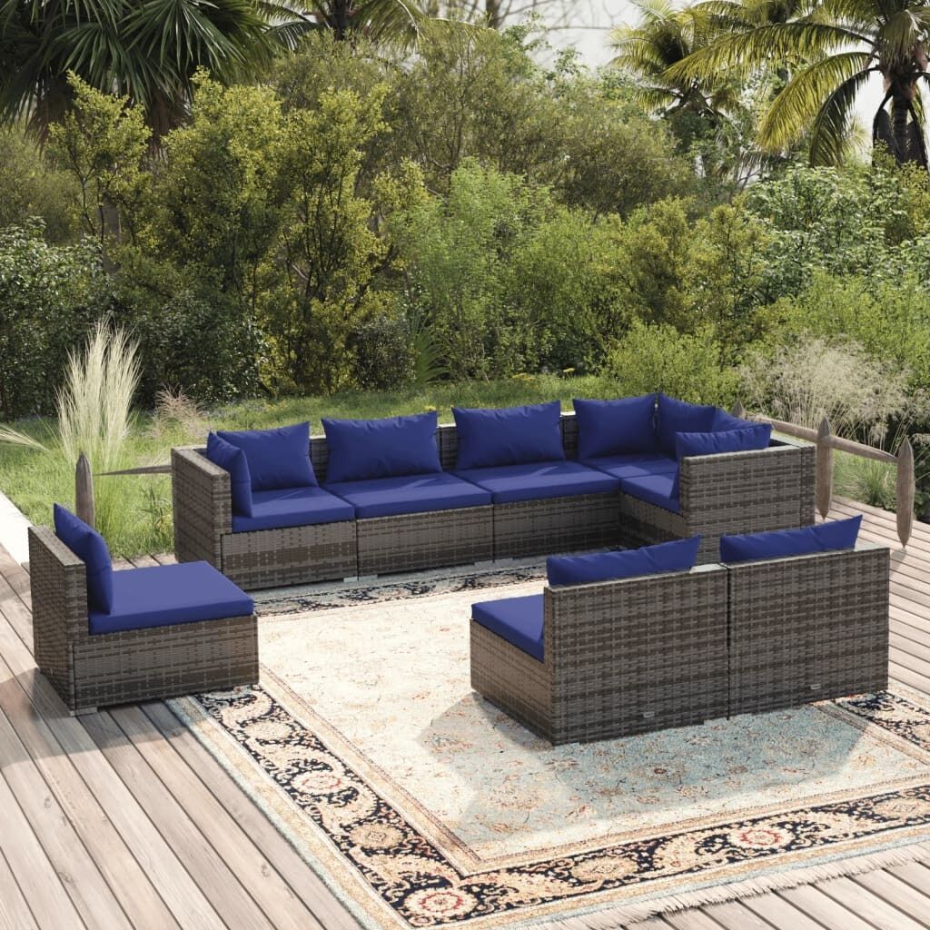 $927.89Relax and enjoy your leisure time with this trendy poly rattan garden lounge set! It is meant to be an excellent choice for you to take a breather from your hectic life. Sturdy and lightweight frame: This patio lounge set features a sturdy powder coating steel frame and plastic chrome feet, which is highly durable. Thanks to its lightweight construction, the sofa set is easy to move.Water-resistant material: Made of water-resistant material, the garden sofa set can withstand humidity and rainy weather. It can also be easily cleaned with a damp cloth when needed.Modular design: The modular design makes it possible to place the set in any arrangement or combine them with other modular segments to meet your needs.Comfortable cushions: The thickly padded and removable cushions provide optimal comfort for your outdoor sitting. Note:In order to extend the life of your outdoor furniture, we recommend you to clean it regularly and do not leave it outdoors without protection unnecessarily.Clean: Use a mild soap solution.Storing: If possible, store in a cool, dry place indoors. If the product is stored outdoors, protect it with a waterproof cover. Wipe and dry the excess water or snow from flat surfaces after a rain or snowfall. Allow sufficient air circulation to avoid moisture-related damage.