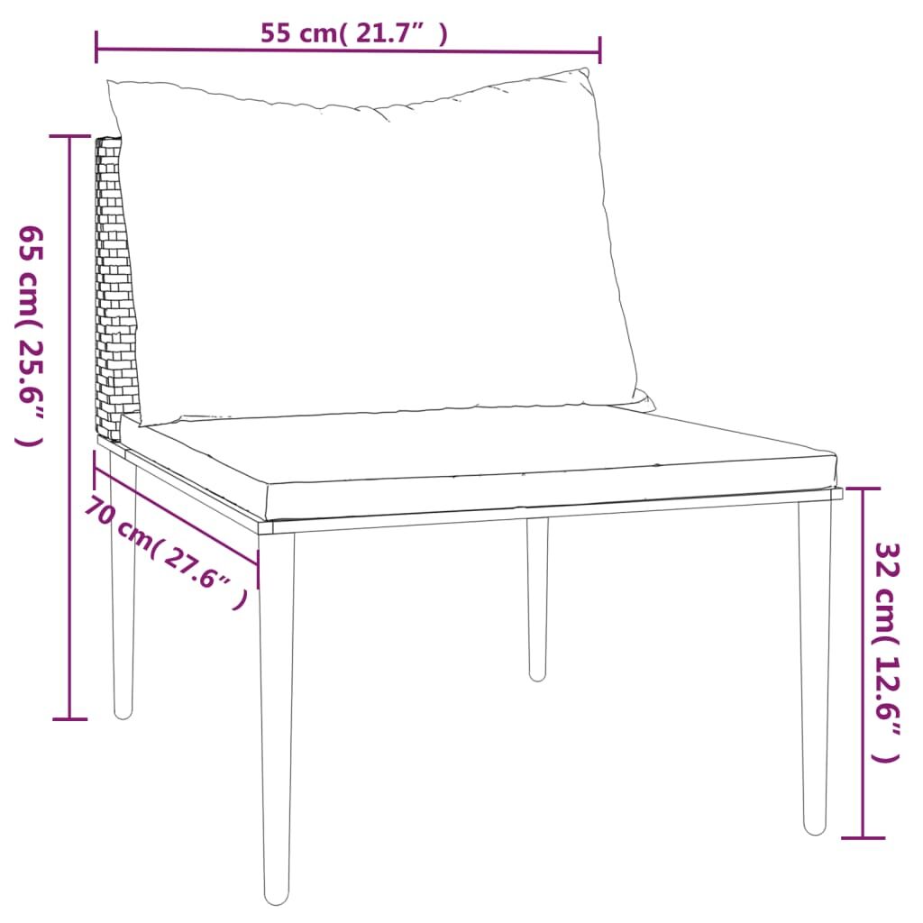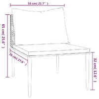 $78.07This trendy garden middle sofa, featuring an elegant and contemporary design, is suitable for dining or relaxing in your garden. Durable material: PE rattan, also known as poly rattan, is weather resistant and easy to clean. It remains beautiful on the outside for a long period of time. It offers great quality, convenience and an aesthetic look.Sturdy frame: The steel frame makes the garden sofa sturdy and stable for daily outdoor use.Comfortable seat experience: The backrest adds extra seating comfort for the outdoor sofa. Also, the thickly padded cushions provide comfort for your sitting time.Modular design: The garden seating is flexible and easy to move around, so you can combine it with other modular segments in the webshop to create your own personal garden lounge set configurations! Note:To make sure your outdoor furniture stays beautiful, we recommend protecting it with a waterproof cover.