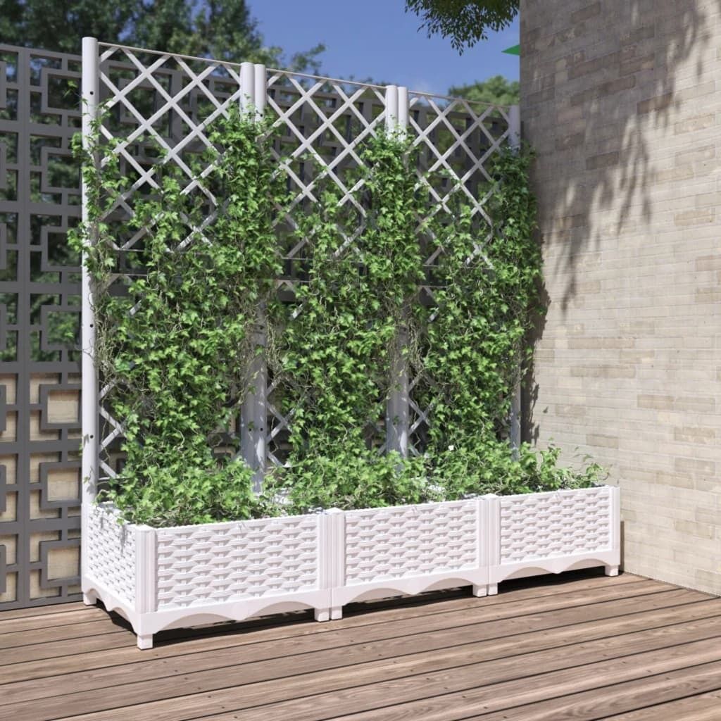 This garden planter with trellis is an excellent choice for climbing plants in your garden, patio and terrace. Durable material: Polypropylene is a popular plastic that is also one of the most used materials in outdoor furniture. It's lightweight, tough, and resistant to impact.Practical bottom box: The bottom box of the trellis planter can accommodate a large number of green plants and flowers.Utility trellis: The integrated trellis offers great support for growing climbing plants such as tomatoes, peas, and roses. Good to know:To make assembly as easy as possible, each product is delivered with a manual.