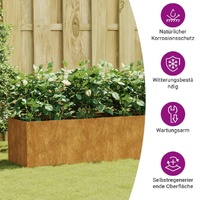 $185.95This garden rasied bed would be great for DIY enthusiasts to decorate your gardens, balconies, or patios. Durable material: Corten steel, also known as weathering steel. This is anti-corrosive by its very nature. It develops a rusty protective layer against corrosion when first exposed to atmospheric conditions. Thus, you don't need to paint it. This can help you save on maintenance and repair costs. The distinctive brown colour on the corten steel will surely be an eye-catcher. Finally, weathering steel is exceptionally durable and will stand up to the test of time. Ample space: The planter is deep and wide enough to hold a large amount of soil and provide ample space for your plants, vegetables, herbs, and flowers.Extra support: The interior support brackets of the raised bed ensure sturdiness and stability.Decorative function: The garden pot can hold your favourite plants or flowers, which is ideal for your garden as decoration.Open bottom design: This planter box has an open bottom design that allows excess water to drain away easily, while also allowing plant roots to extend freely and absorb more nutrients from the soil. Good to know:This product is not rusted yet and has a normal metal colour when you receive it, but rust will develop over time. You could speed up the rusting process by spraying it with soap water and salt water. To keep your clothes stain-free, avoid contact with the developing rust layer.This raised bed does not include a bottom.