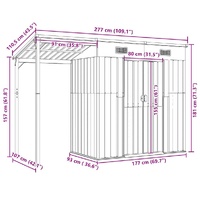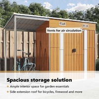 $320.80This sturdy garden shed, standing out with an extended roof, is perfect for storing a wide variety of items like tools, garden furniture, garden equipment, and more. Robust material: The garden tool shed is made of galvanised steel, which prevents rusting and endures long-time use. Steel is an exceptionally hard and strong material. It offers sturdiness and stability. Galvanisation provides better protection against corrosion and is useful for products that'll be used outdoors as well as in harsh environments.Ample storage space: This metal shed offers plenty of room to store your firewood, garden tools, furniture, equipment, and more. It also has an extended roof for storing firewood. The roof can be fixed on either side of the shed.Convenient handles: The storage shed features handles on the door for easy entry.Good ventilation: The outdoor shed is equipped with 2 air vents, providing ventilation to reduce the accumulation of moisture and odour in the house.Sloping design: The sloping roof ensures unimpeded drainage of water.