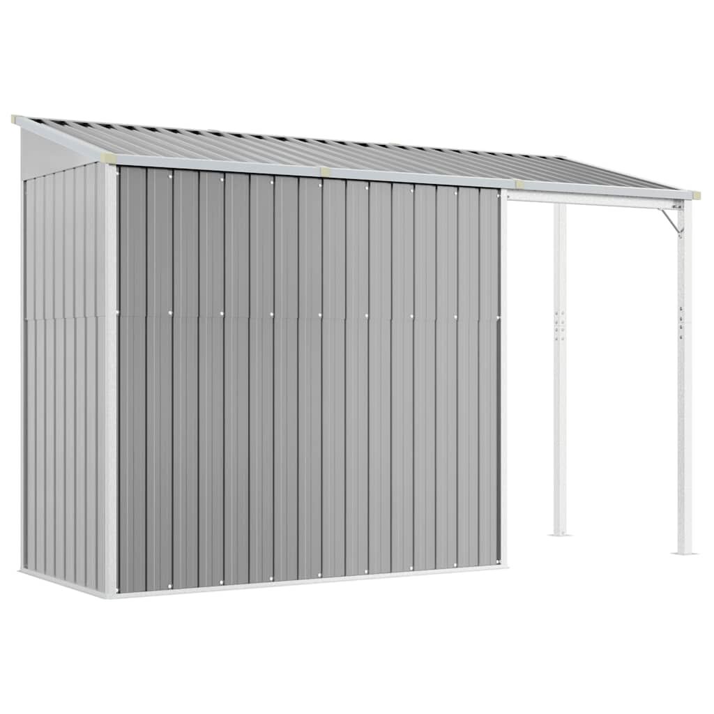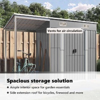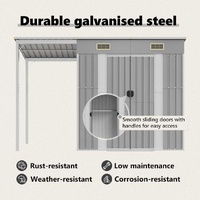 $332.89This sturdy garden shed, standing out with an extended roof, is perfect for storing a wide variety of items like tools, garden furniture, garden equipment, and more. Robust material: The garden tool shed is made of galvanised steel, which prevents rusting and endures long-time use. Steel is an exceptionally hard and strong material. It offers sturdiness and stability. Galvanisation provides better protection against corrosion and is useful for products that'll be used outdoors as well as in harsh environments.Ample storage space: This metal shed offers plenty of room to store your firewood, garden tools, furniture, equipment, and more. It also has an extended roof for storing firewood. The roof can be fixed on either side of the shed.Convenient handles: The storage shed features handles on the door for easy entry.Good ventilation: The outdoor shed is equipped with 2 air vents, providing ventilation to reduce the accumulation of moisture and odour in the house.Sloping design: The sloping roof ensures unimpeded drainage of water.