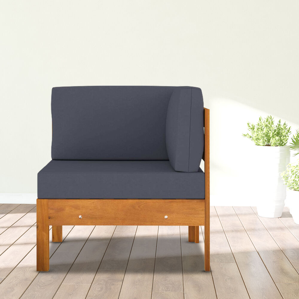 The sofa bench has been crafted from solid acacia wood in teak look, which makes it sturdy and durable and suitable for outdoor use. The cushion and back pillows add to the bench's seating comfort. Additionally, with the oil-finished surface, the bench is easy to clean with a damp cloth. Our bench is easy to assemble.